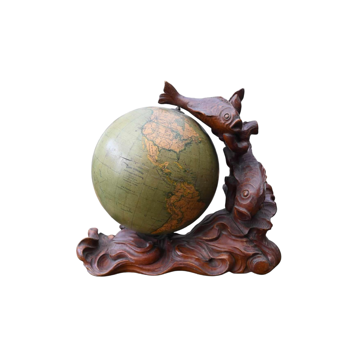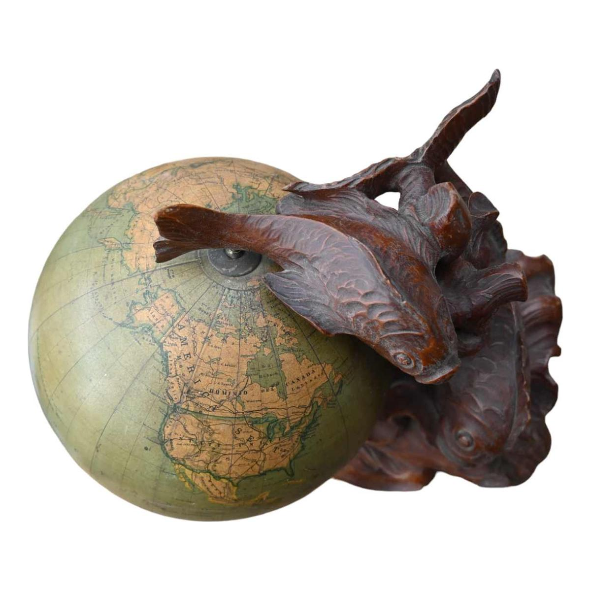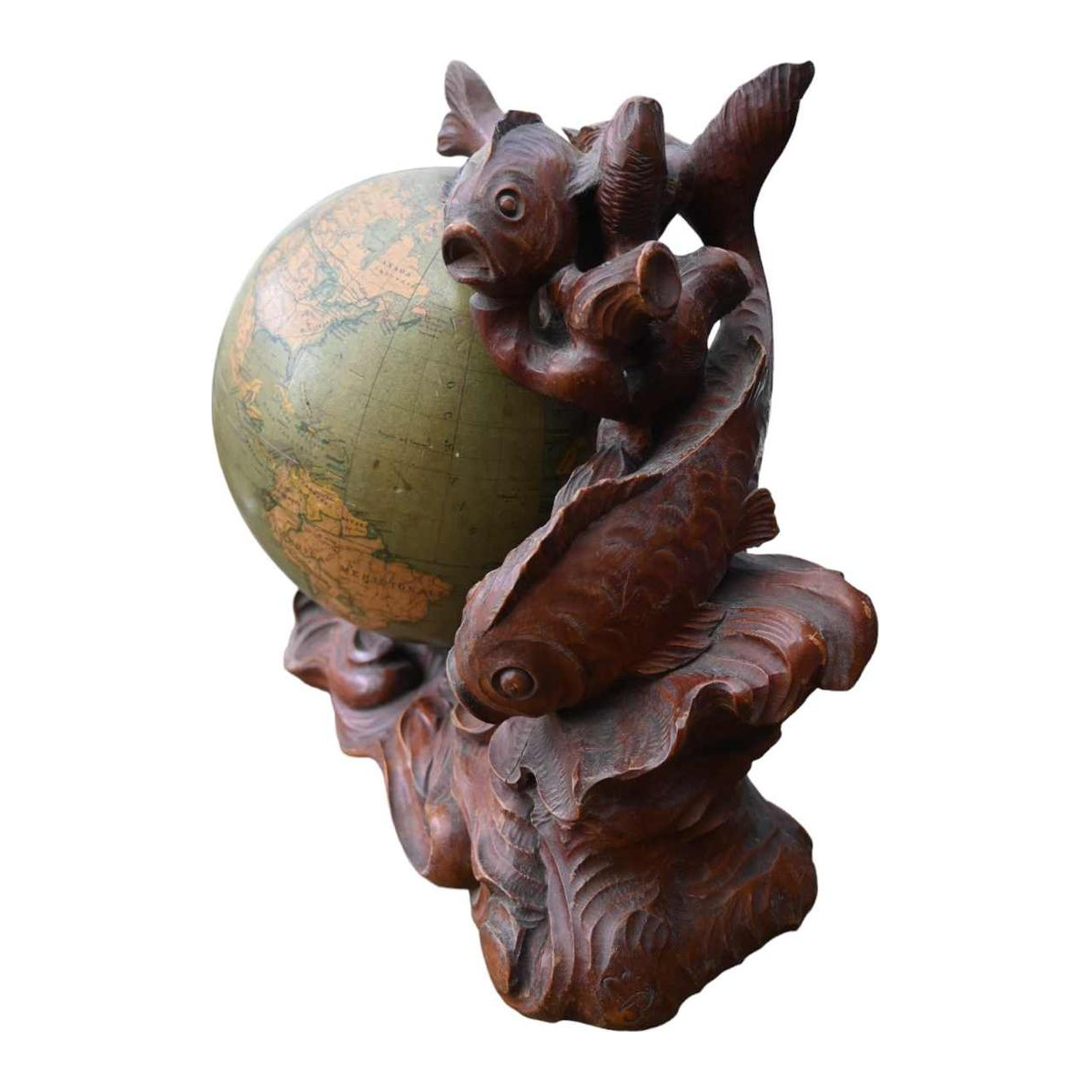 Globe mounted on an original sculpture signed and dated by the sculptor 1946.