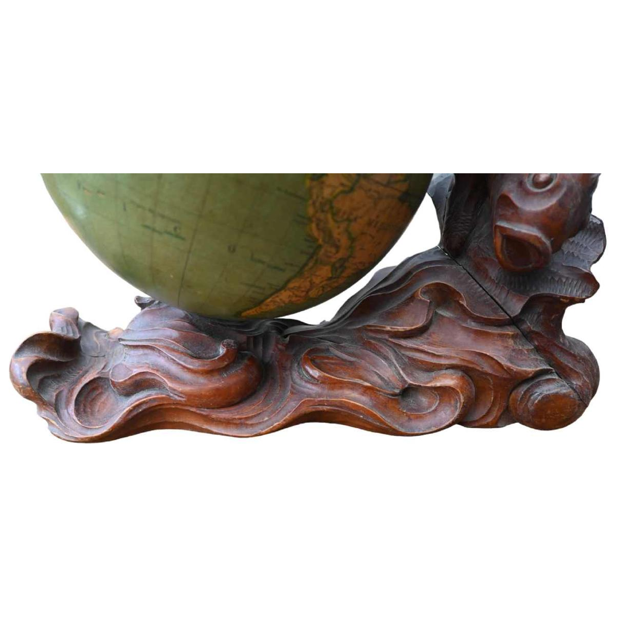 The globe still rests on its original base.