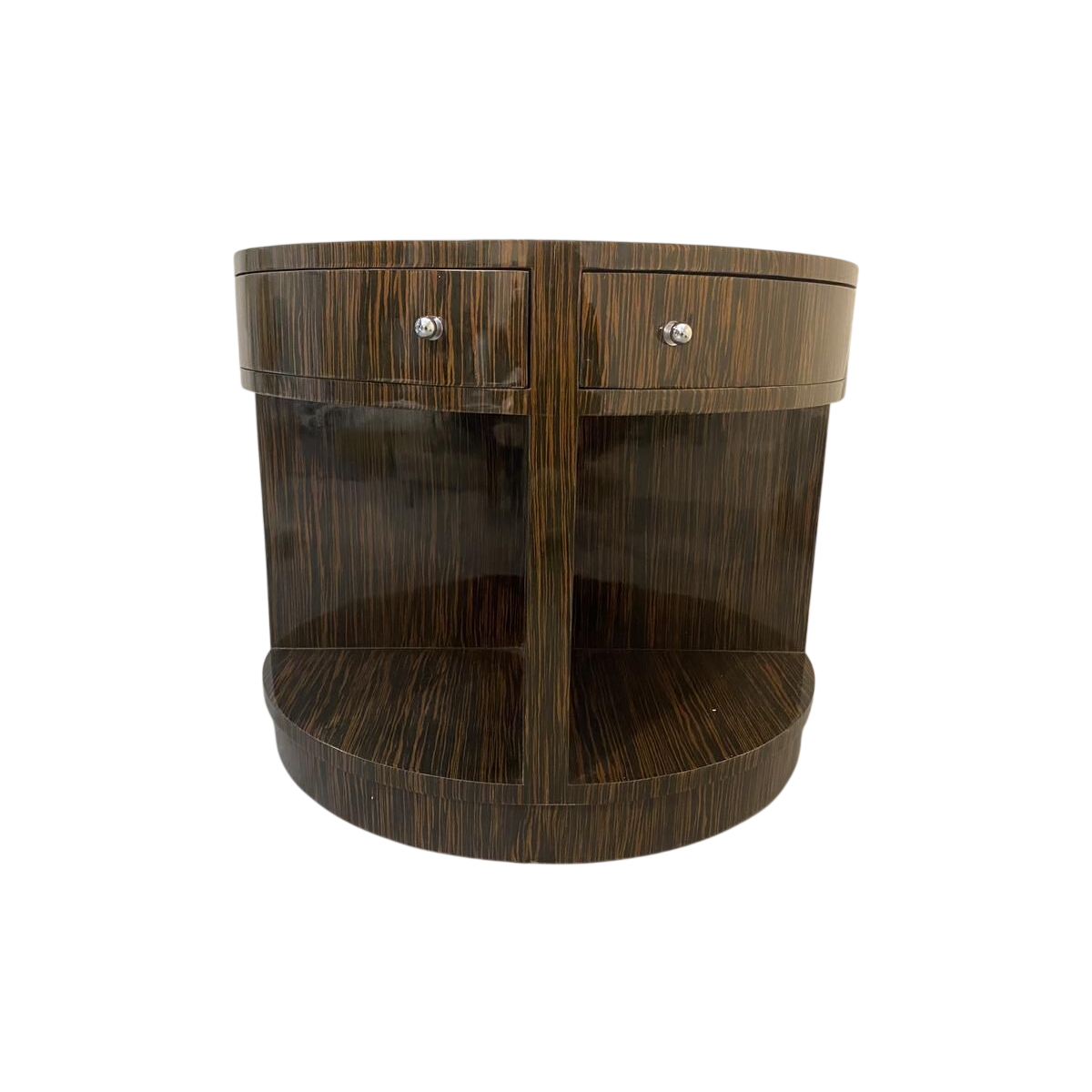Semi-circular console or chest of drawers with two niches and two drawers in the frieze. Chrome knobs.
