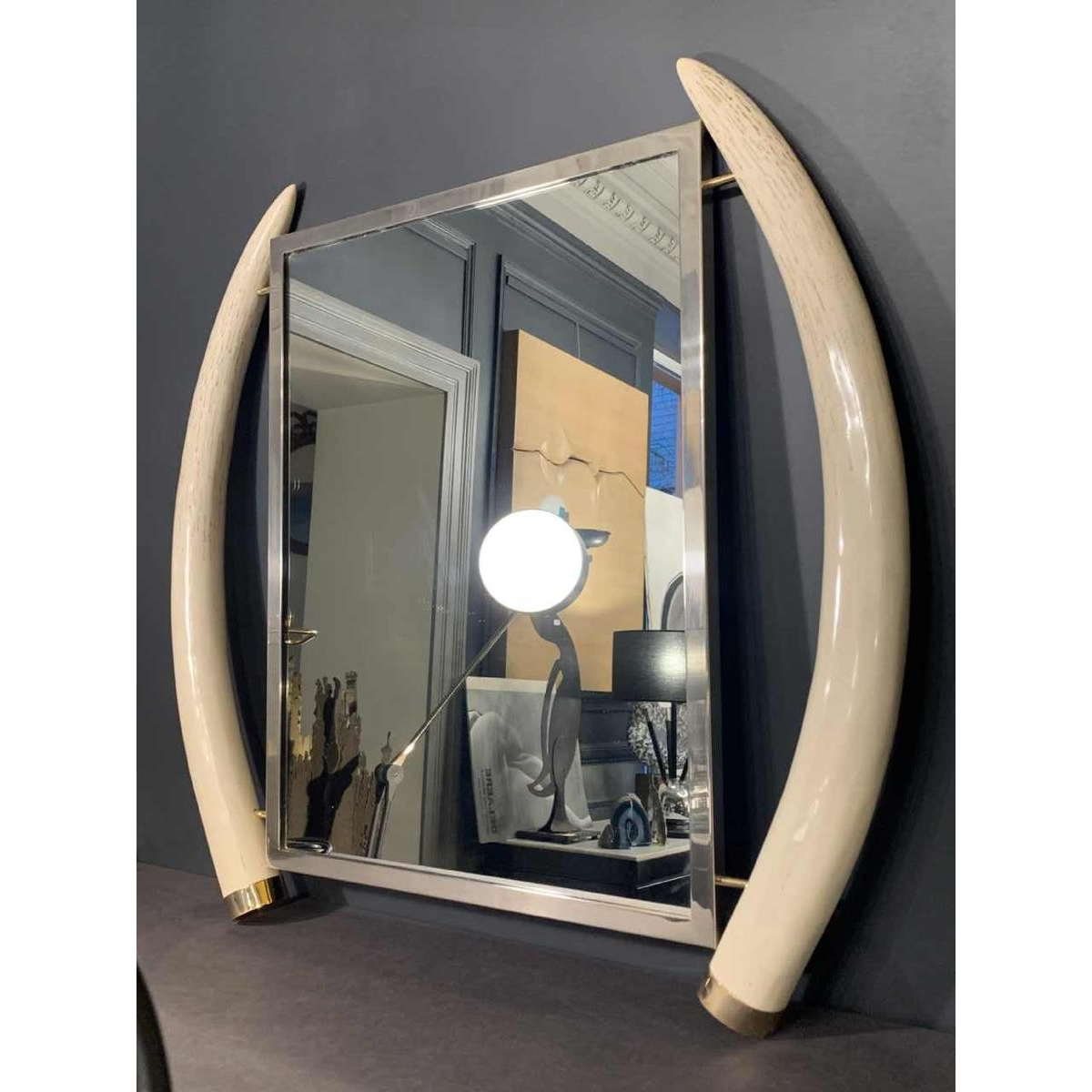 Mirror 70s " faux elephant tusks ", chrome and brass, Hollywood Regency style, made by VALENTI & Co Barcelona (attributed).