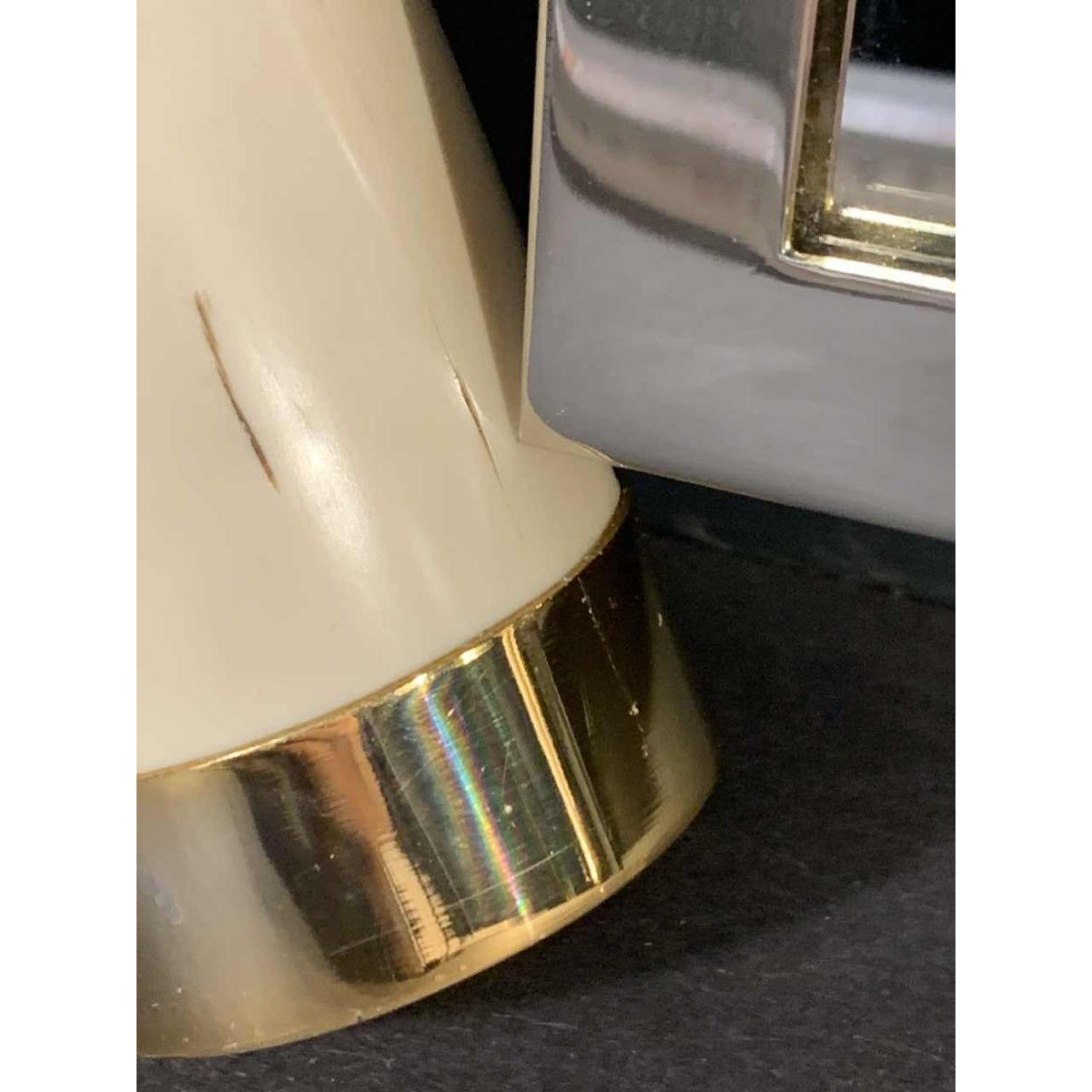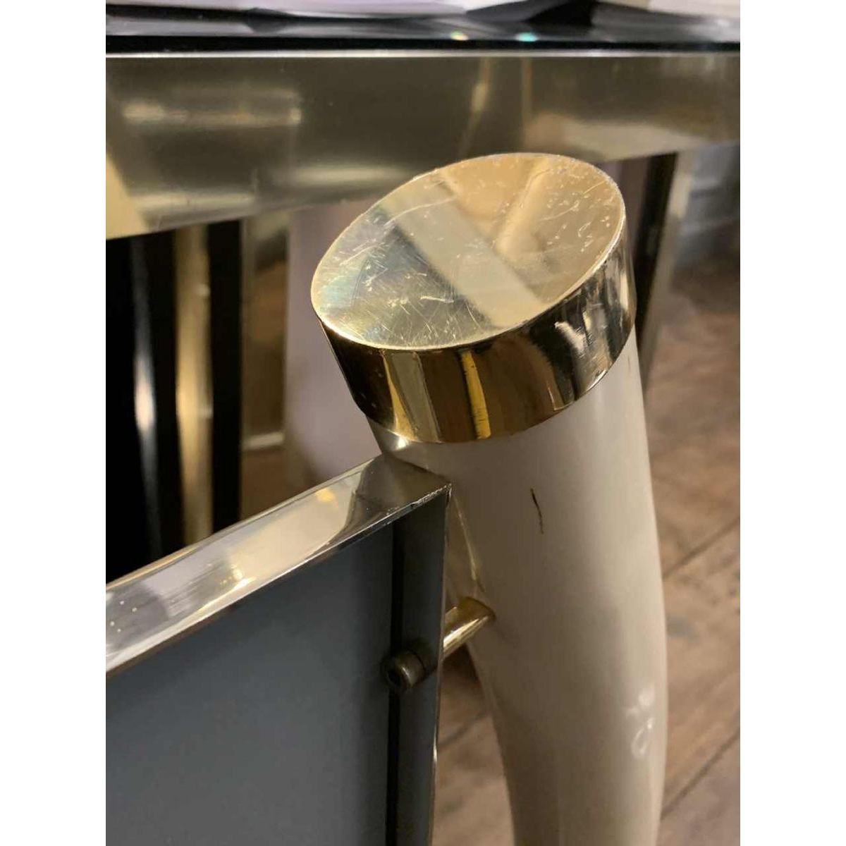 This form is only used to notify us of illegal content on product: VALENTI & Co, Faux Ivory Elephant Tusk Mirror, Brass, Hollywood Regency, 1970s.