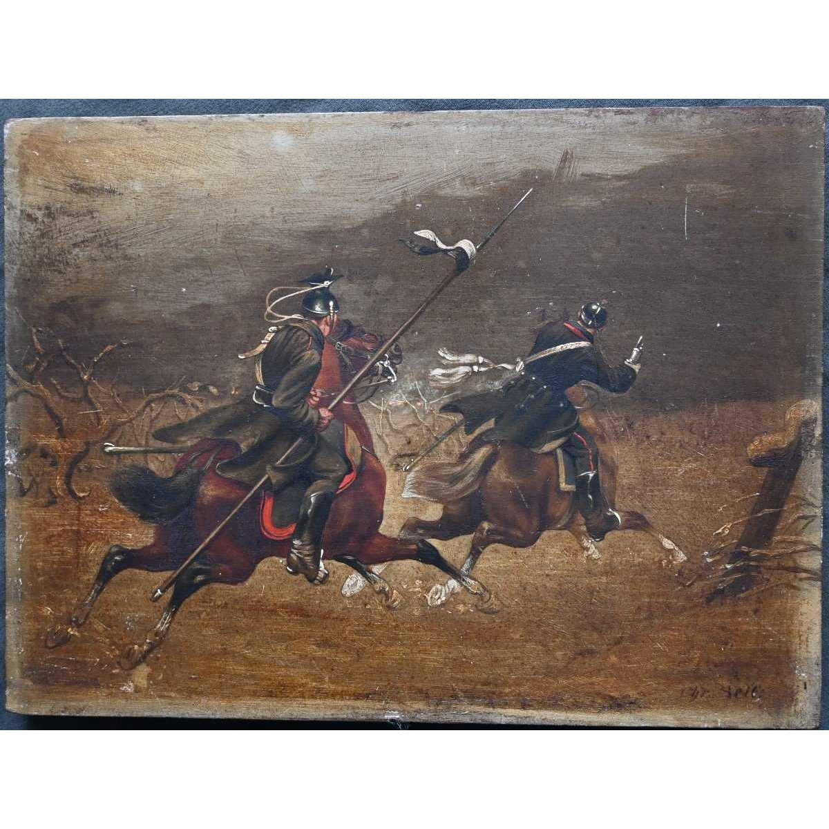 (https://www.artaplaza.com/en/other-paintings/5416-christian-sell-german-equestrian-military-scene-painting-oil-on-panel-19th-century.html)
