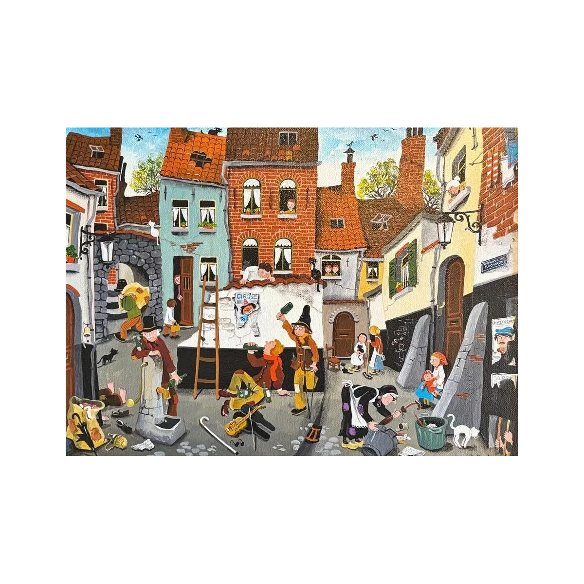 A painter born in Brussels in 1943, she studied visual arts. She taught drawing for a year, then went to Argentina where she lived for four years, supporting herself through sculpture and various crafts. After returning to Belgium, she devoted herself entirely to painting joyful, colorful, and naive works that brought her immediate success. Ref: femmespeintres.be.. She is one of the most renowned naive artists in Belgium. One of her works is exhibited at the Museum of Naive Art in Paris.