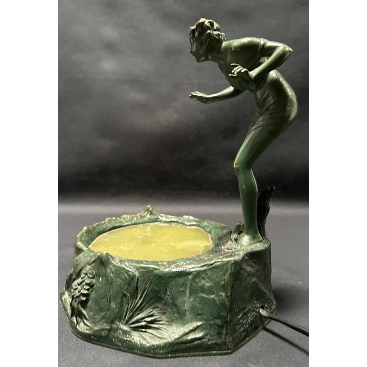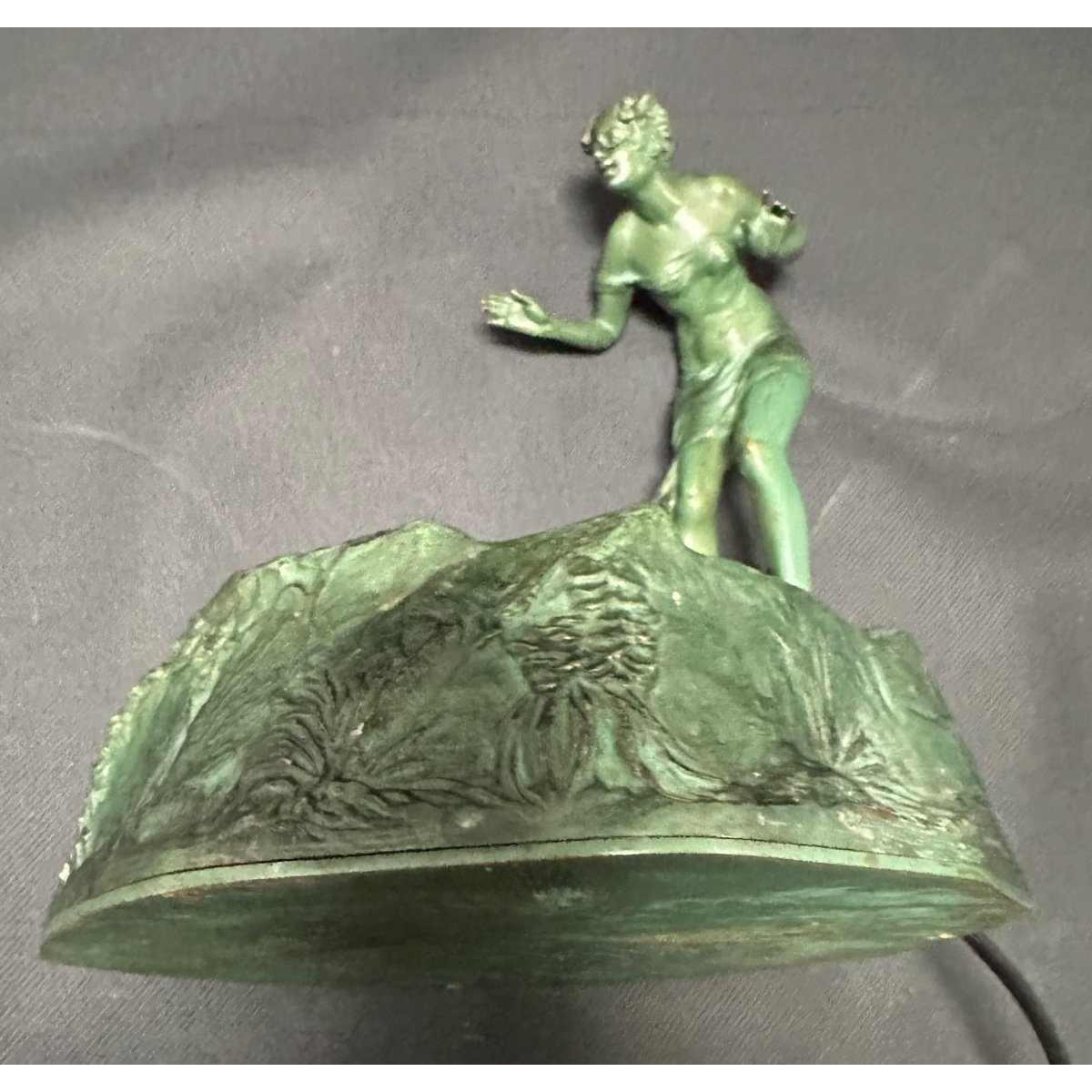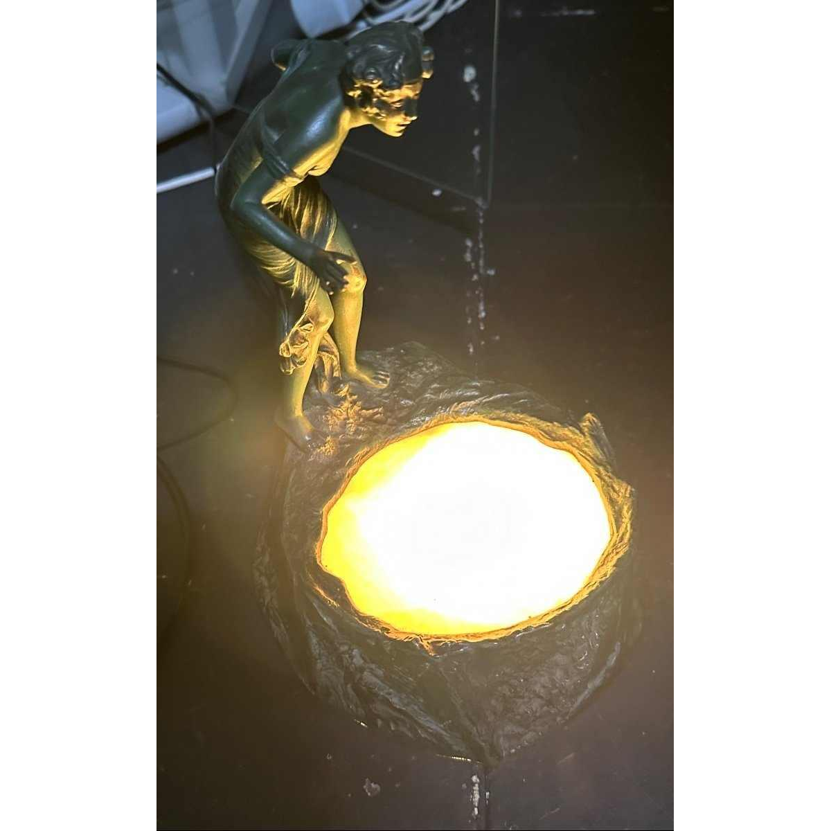 Rare sculpture with light fixture in the center. In working condition.