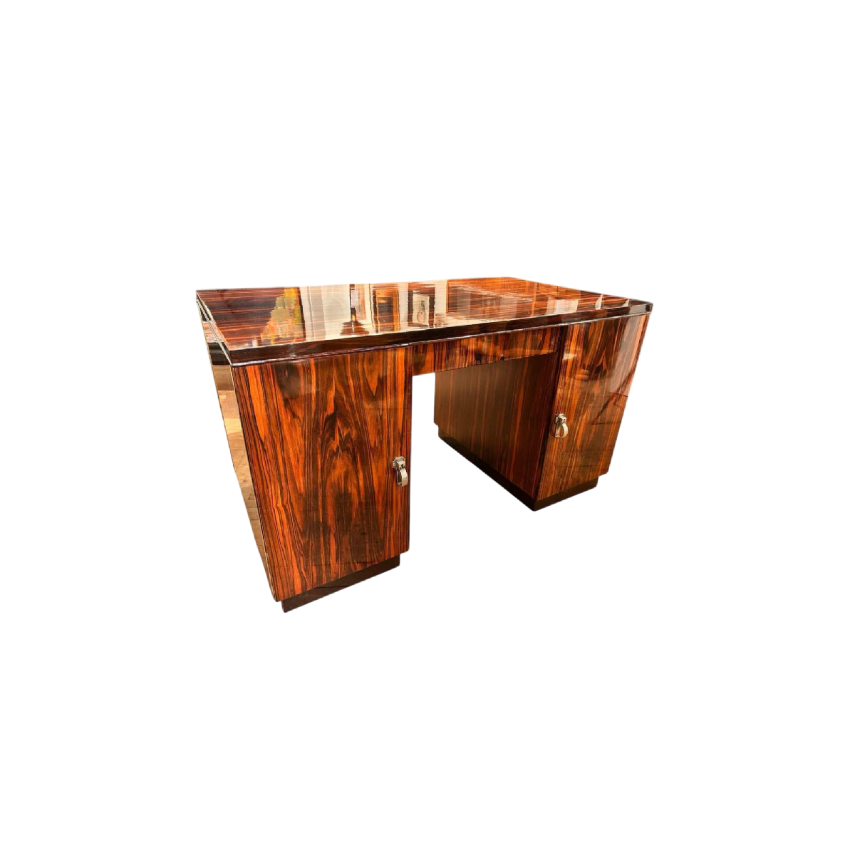 Art Deco double-sided desk, stamp-polished Macassar ebony, France ca 1925