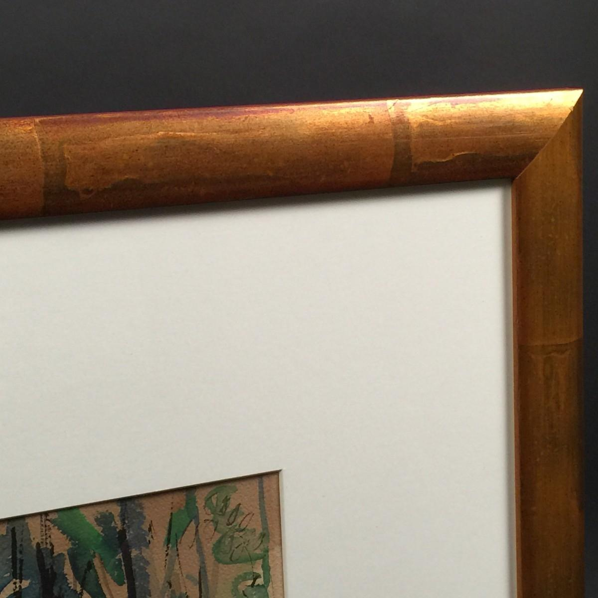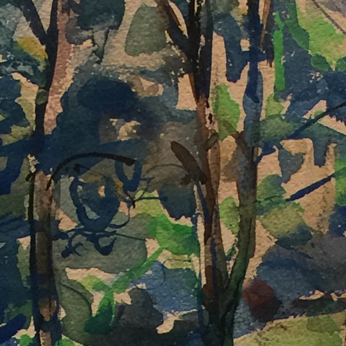Gouache sur papier de Flory Roland (Liège 1905-1978) représentant une terrasse en un sous-bois lumineux. Subtile mélange d'impressionnisme et de fauvisme, un peu à la manière de Rik Wouters. Très bel état de conservation, nouvel encadrement et passe-partout.