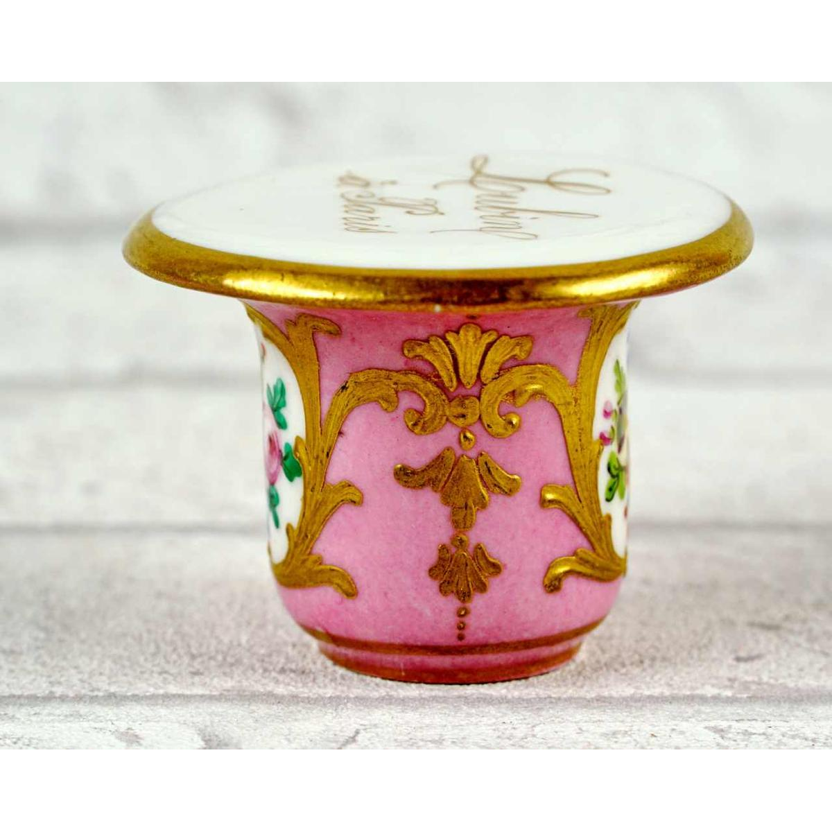 This form is only used to notify us of illegal content on product: Paris (or Limoges) porcelain for Lubin, perfumer in Paris, blush mortar, 19th century.