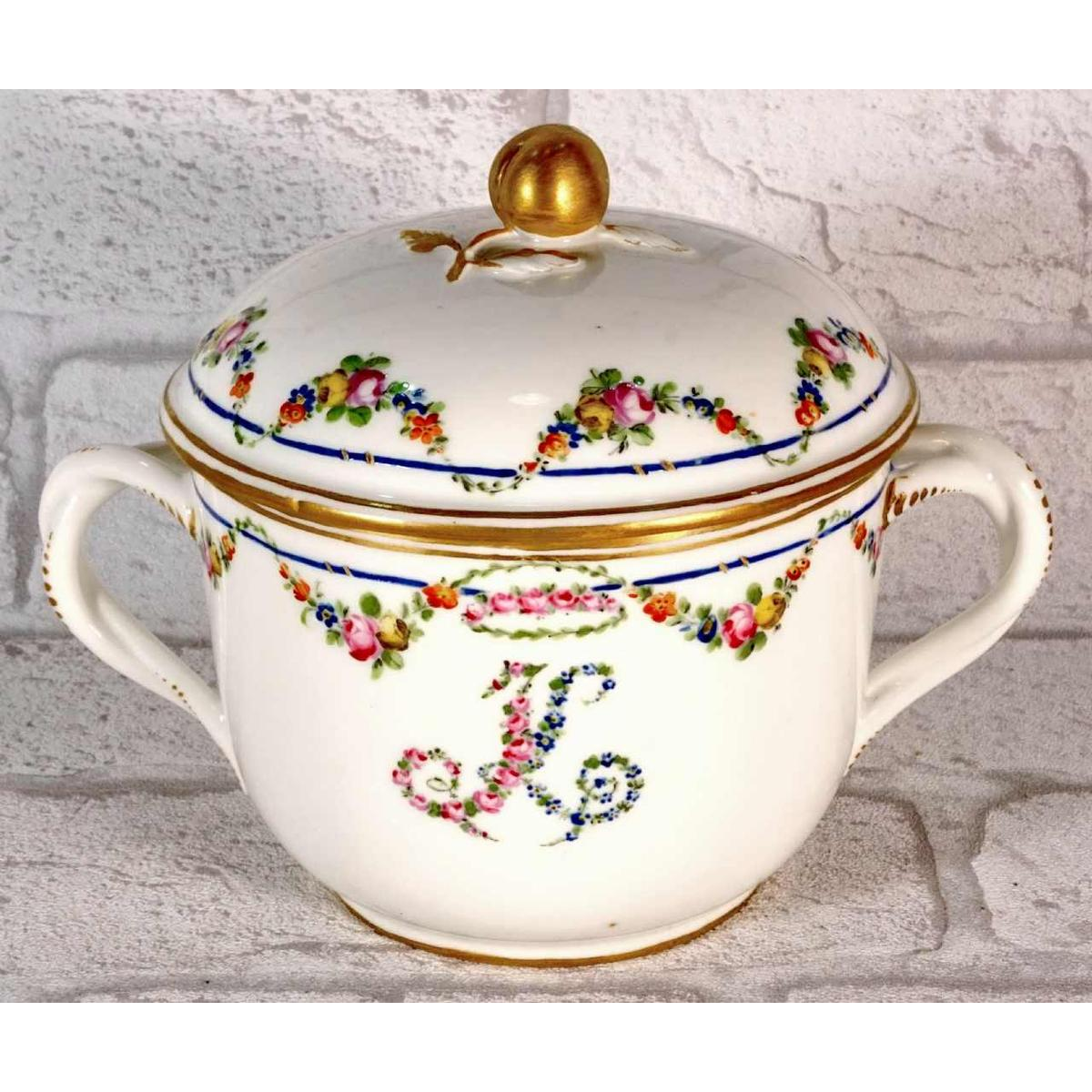 This tall, narrow form of Ecuelle à bouillon is highly original and rare.