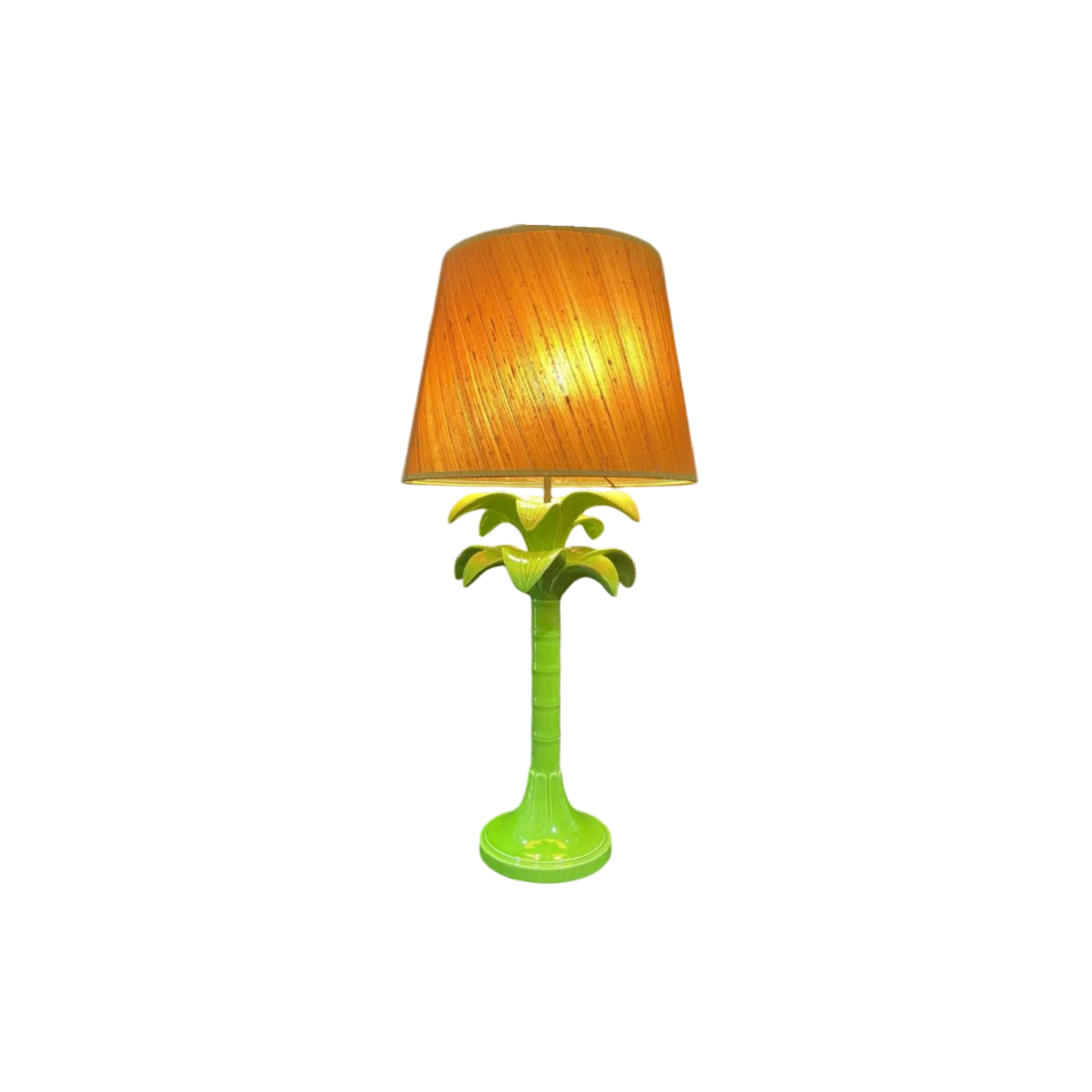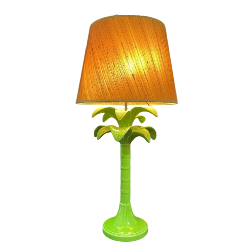 Green ceramic lamp base featuring a palm tree. Italy circa 1970.