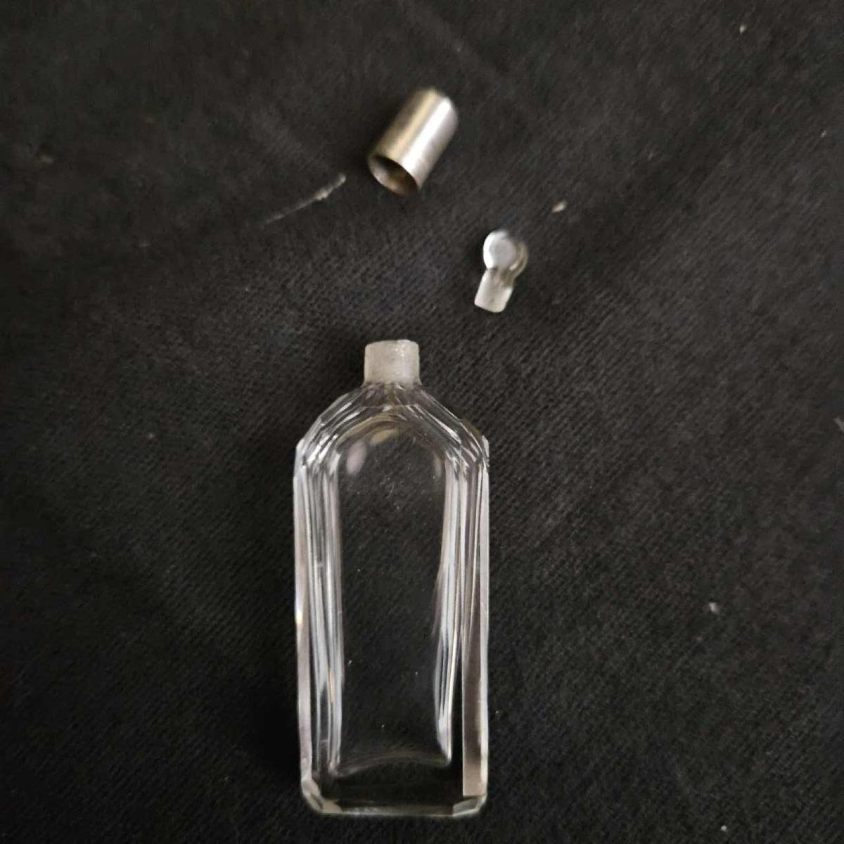 Perfume box in stingray containing 4 crystal perfume bottles, +/- 6cm high, with small silver stoppers and mini glass inner stoppers. The set includes a funnel for filling the bottles. The case is opened with a small push-button. Made in France in the late 18th century.