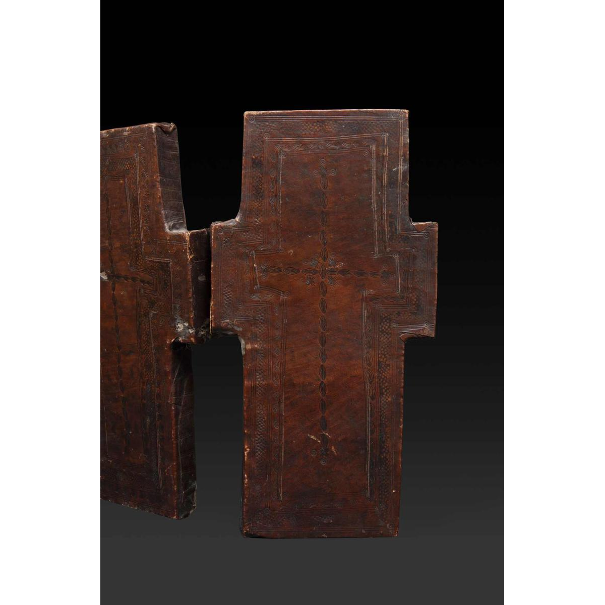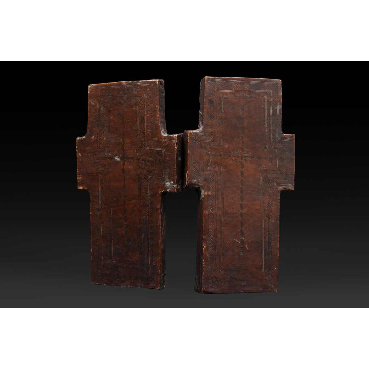 Wooden diptych cross, Ethiopian icon, spiritual heritage, sacred art of the Coptic Church, 19th century