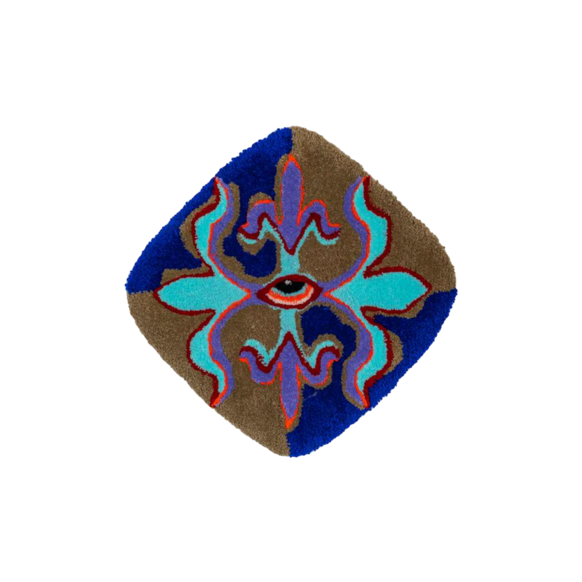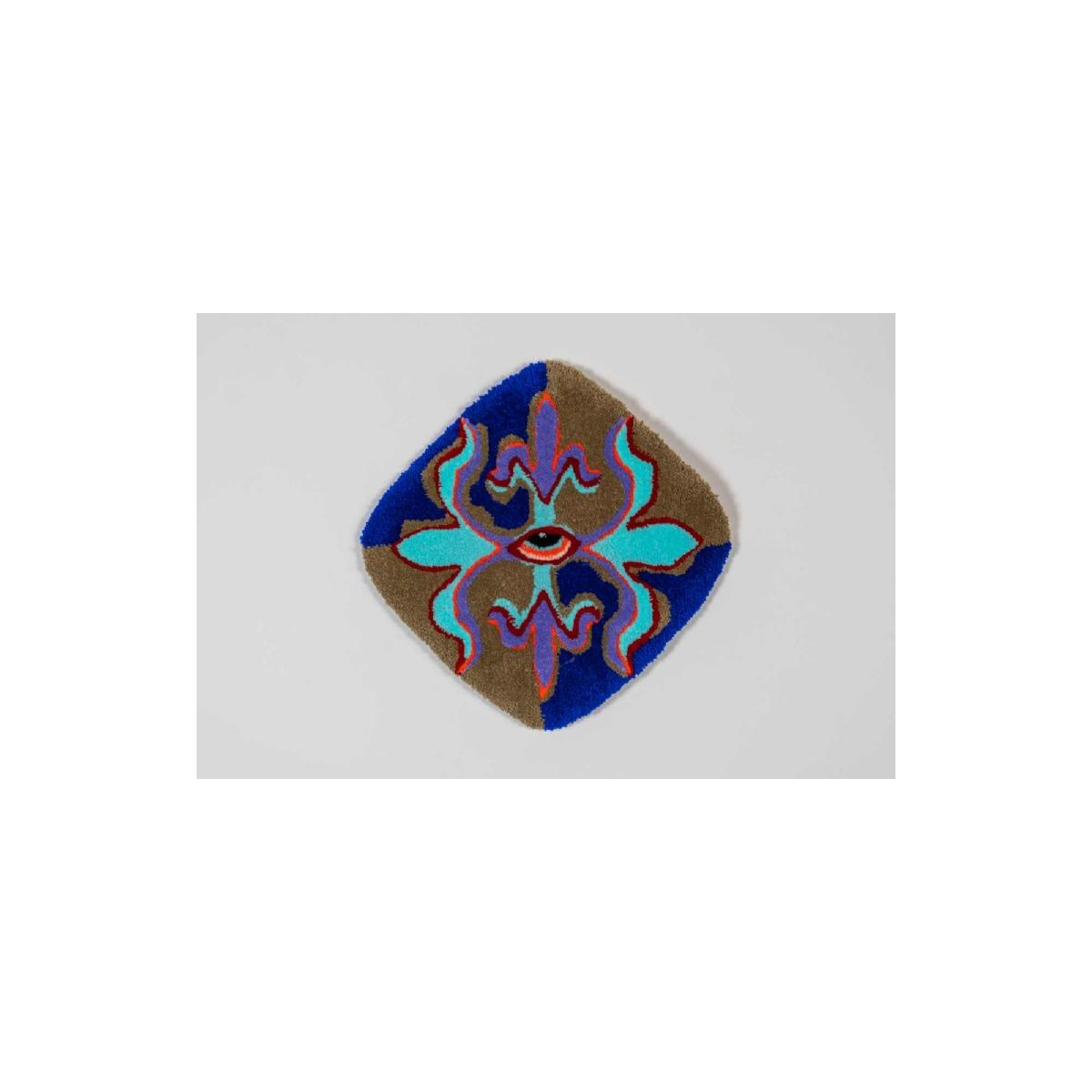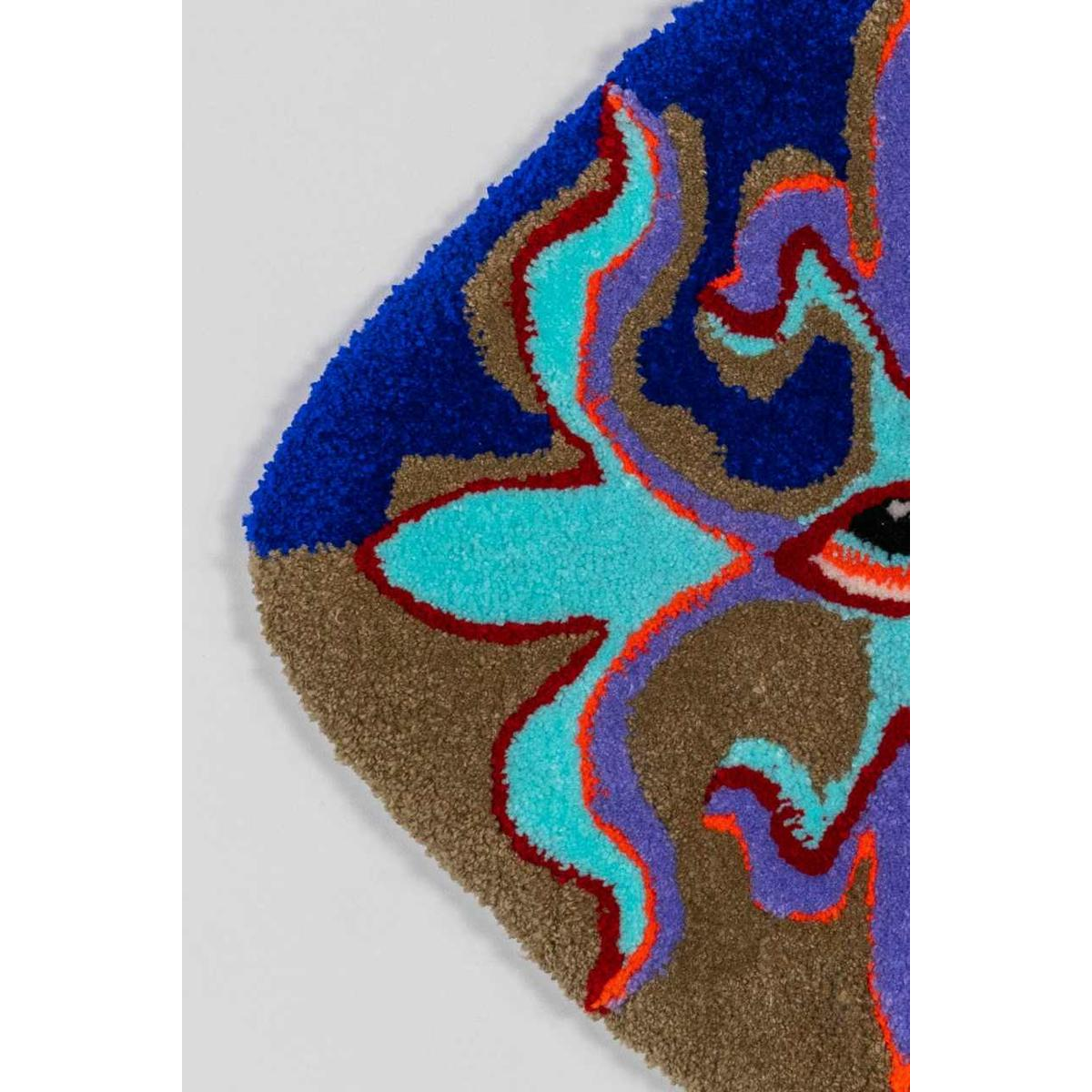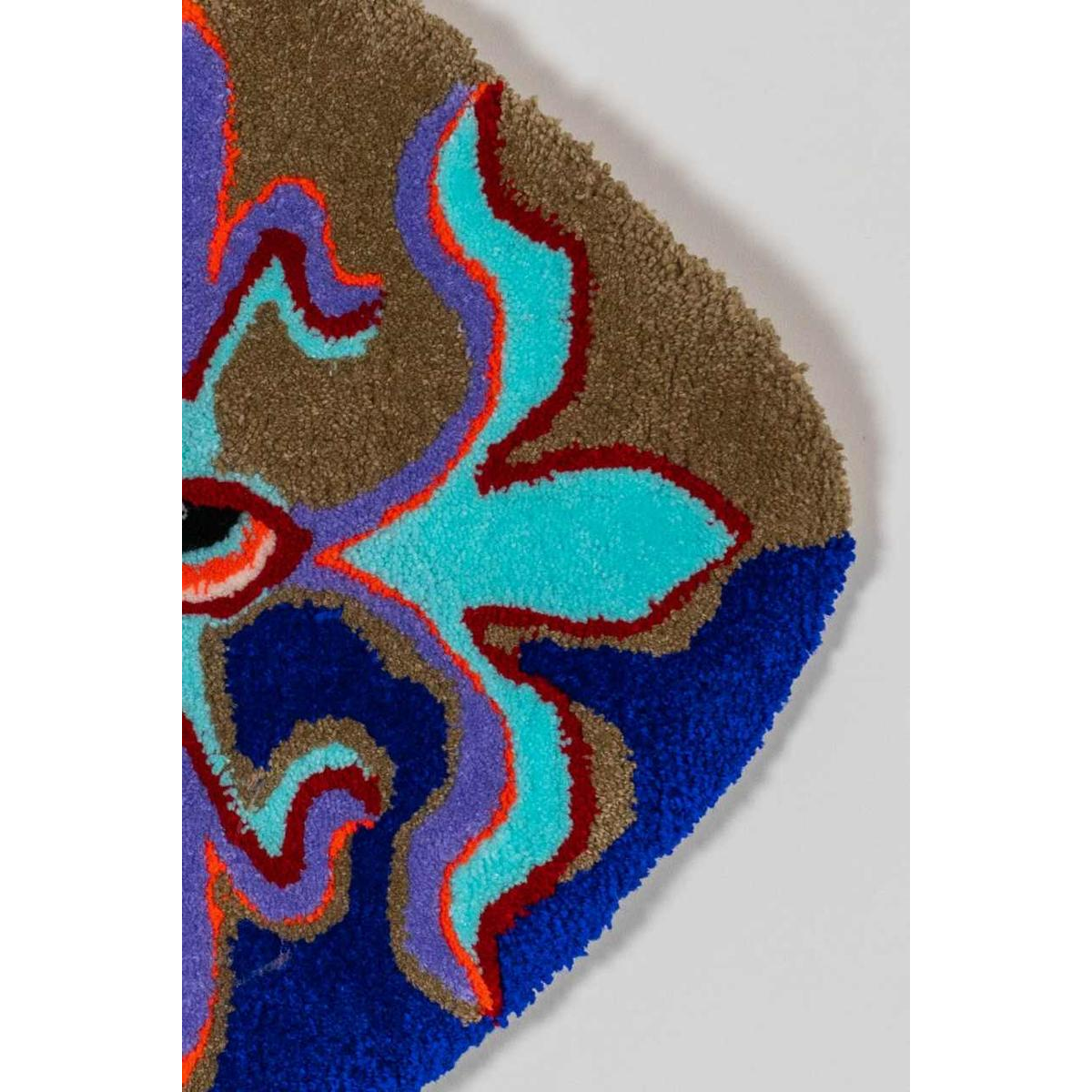 Bleu Noiir is a self-taught, multidisciplinary artist who puts experience at the heart of her work. Impatient and free of convention, she likes to let her hands do the work, try things out and learn in the moment. Every act she undertakes responds to the need to create in the moment. It was from this state that her first textile project was born, a monumental embroidery on a bed base. Tufting was a natural next step in her artistic research. With no academic training, her creations reflect sincerity and spontaneity. Paradoxically, she has masterfully developed a wildly naïve universe, inspired by her travels in Asia. Bleu Noir is agoraphobic, and her anxieties translate into a need to exert extreme control over her environment and herself. Art enables him to transcend his disorder. After her prolific expression of a darker side of her being through the graphic power of her collages, her tufted creations mark the advent of the second phase of this journey. Freed from a certain form of violence, her carpets allow her to express the joyful, crazy, dreamy child.
