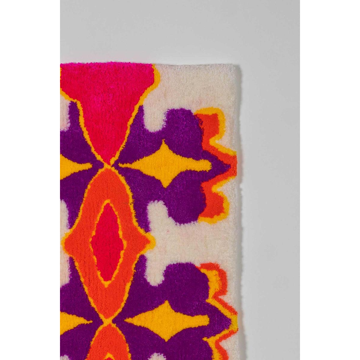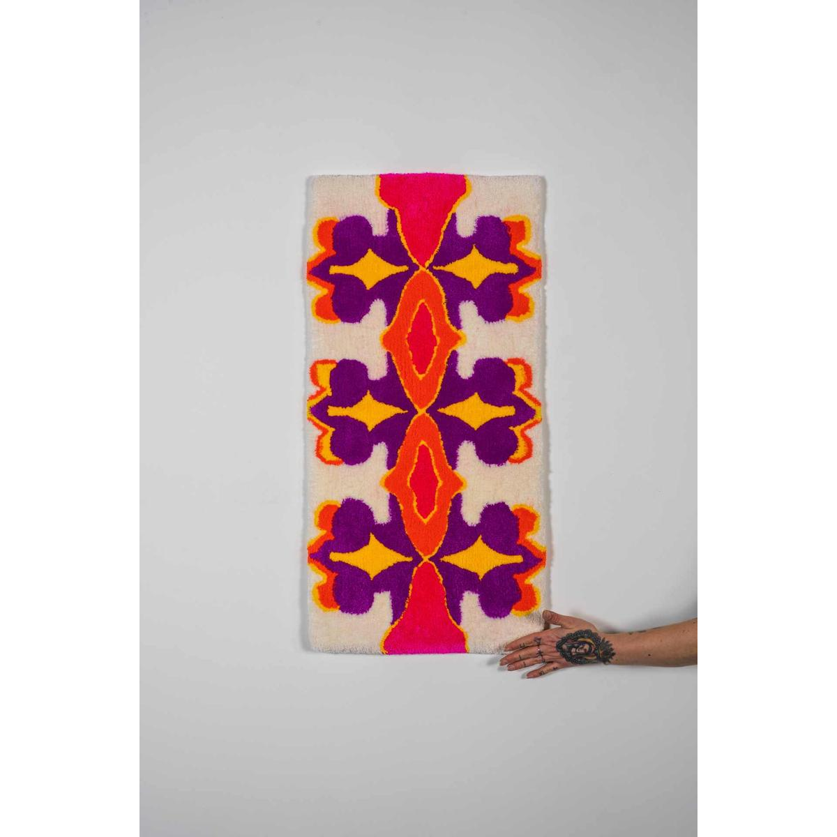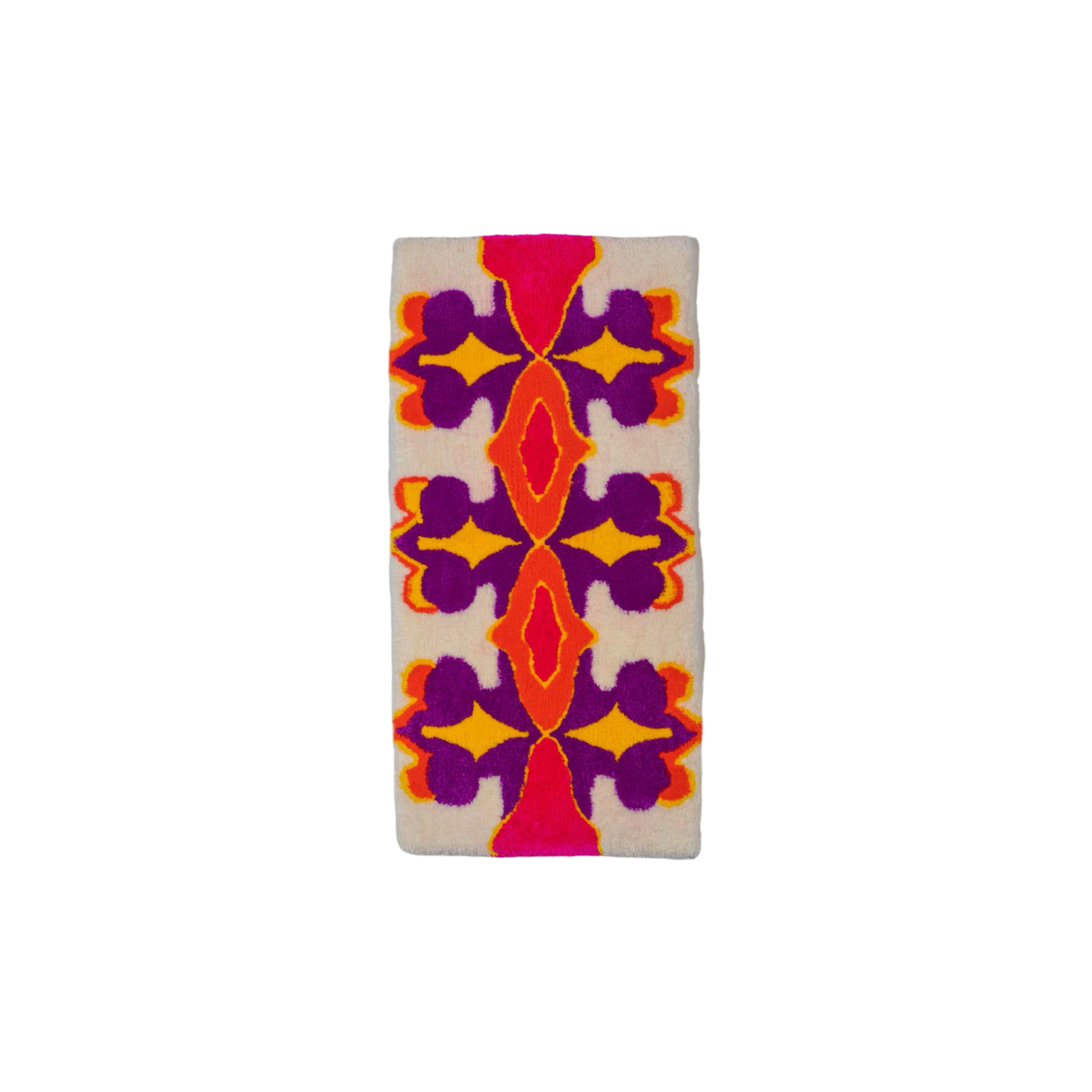 Bleu Noiir is a self-taught, multidisciplinary artist who puts experience at the heart of her work. Impatient and free of convention, she likes to let her hands do the work, try things out and learn in the moment. Every act she undertakes responds to the need to create in the moment. It was from this state that her first textile project was born, a monumental embroidery on a bed base. Tufting was a natural next step in her artistic research. With no academic training, her creations reflect sincerity and spontaneity. Paradoxically, she has masterfully developed a wildly naïve universe, inspired by her travels in Asia. Bleu Noir is agoraphobic, and her anxieties translate into a need to exert extreme control over her environment and herself. Art enables him to transcend his disorder. After her prolific expression of a darker side of her being through the graphic power of her collages, her tufted creations mark the advent of the second phase of this journey. Freed from a certain form of violence, her carpets allow her to express the joyful, crazy, dreamy child.