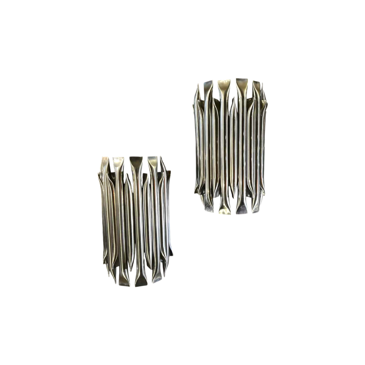 Pair of brushed aluminum 'organ pipe' wall sconces light, ca. 1970.