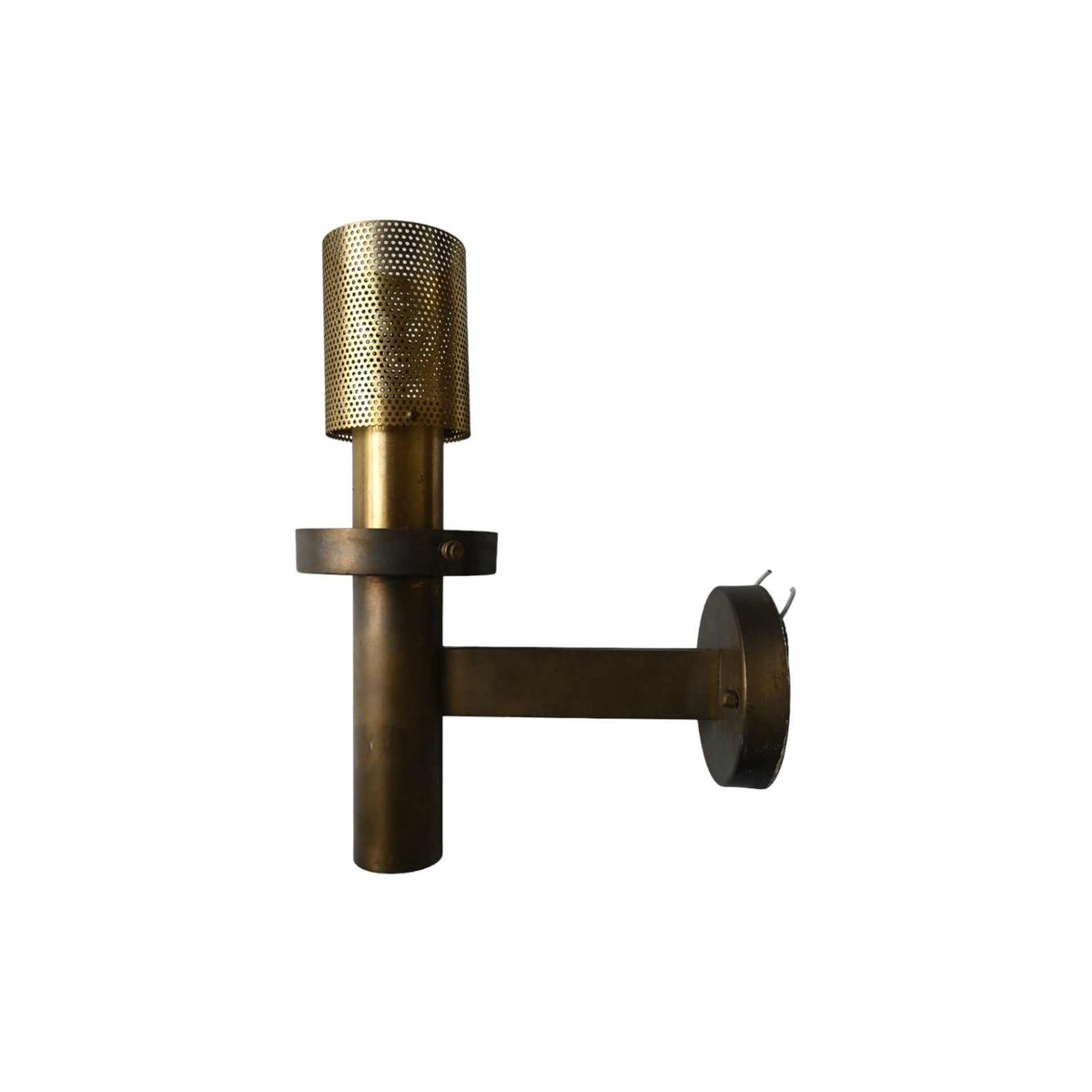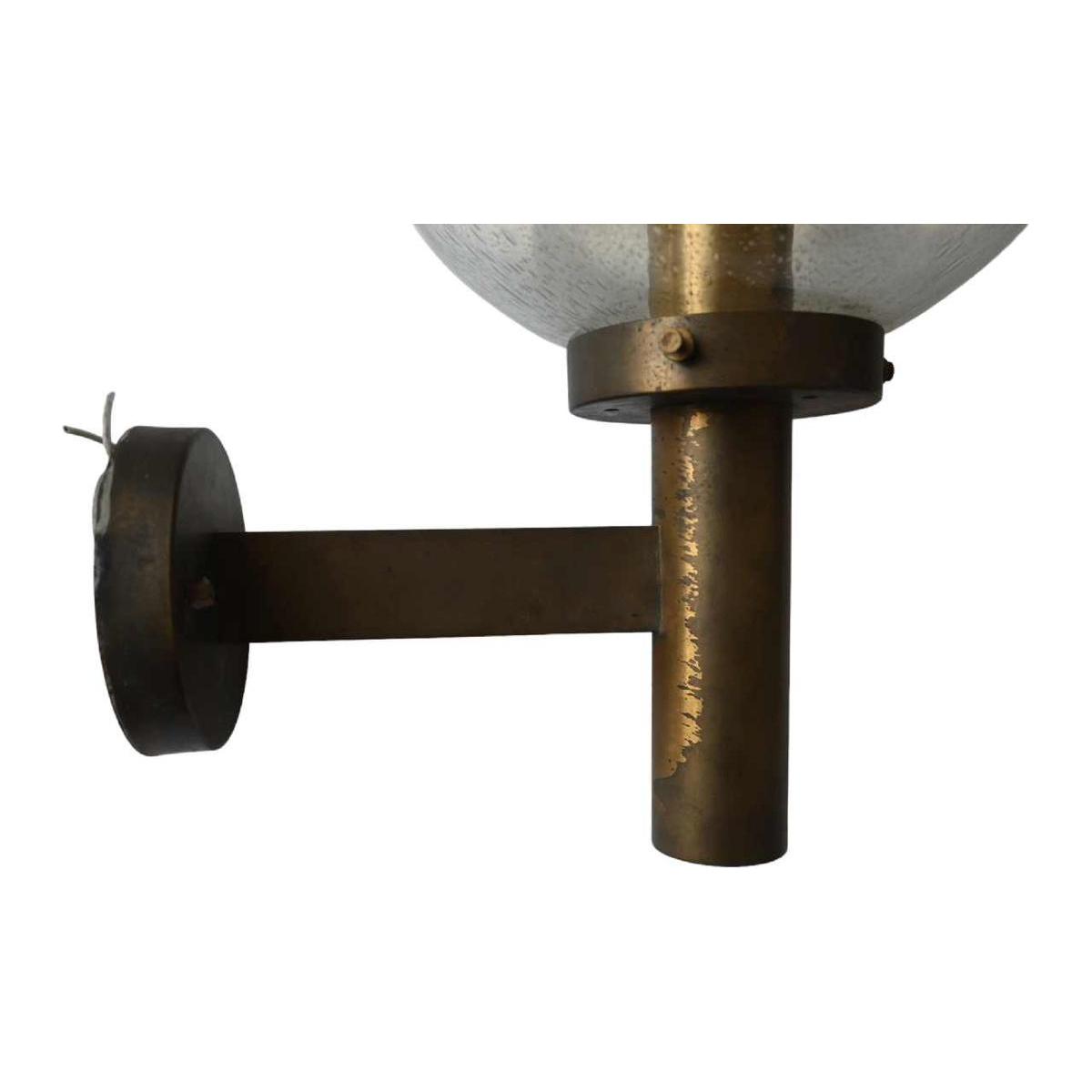 A pair of large sconces with bubble glass and brass base.