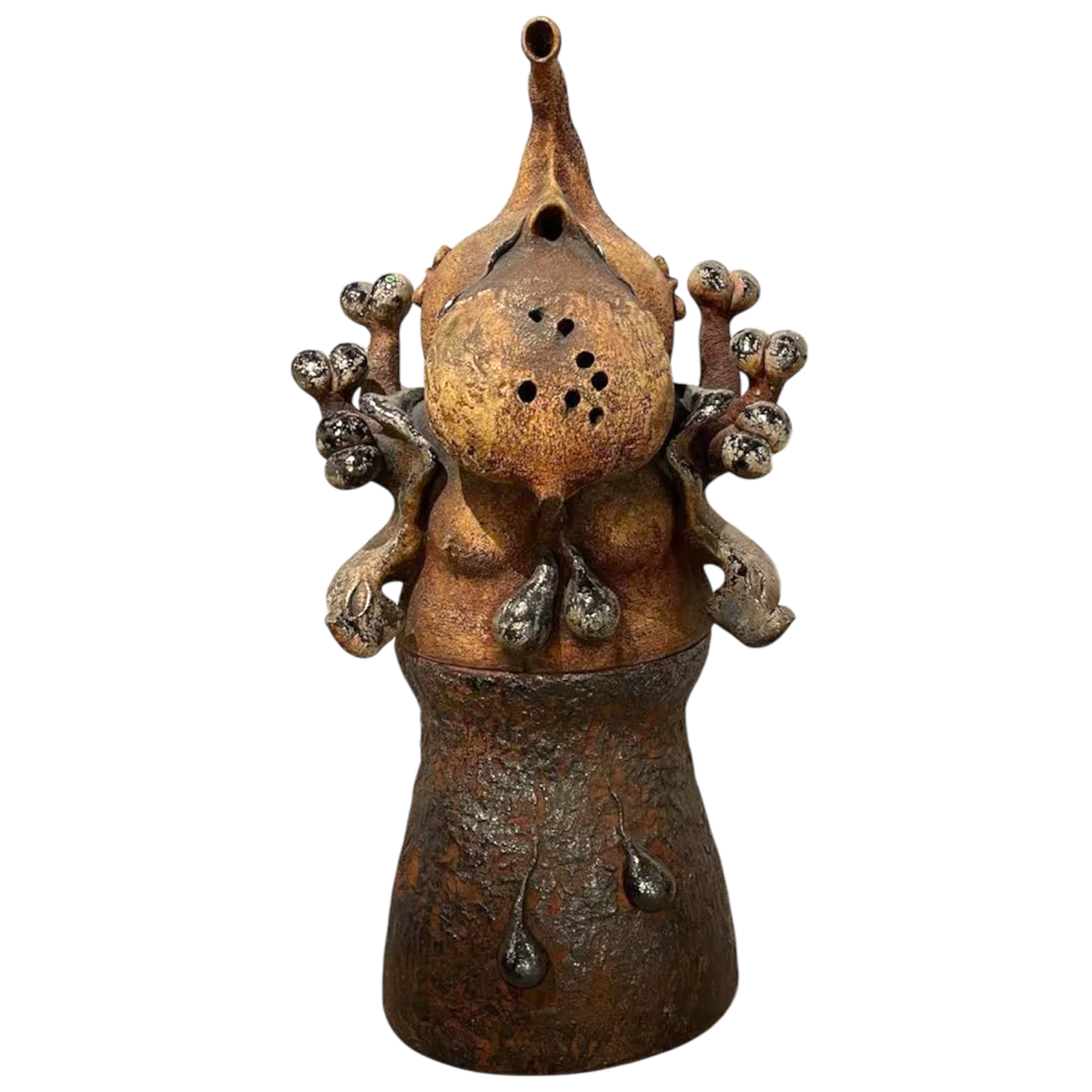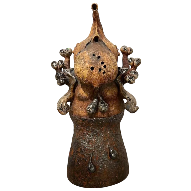 He creates anthropomorphic and biomorphic sculptures (confusing plant and animal elements…), humanoid figures transformed into extraterrestrial and fantastic creatures which he executes in terracotta or bronze.