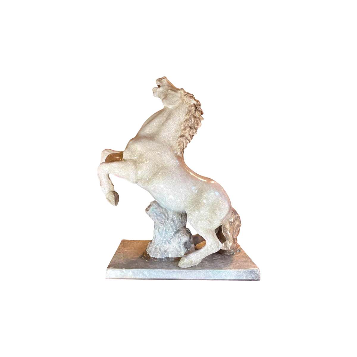 Important sculpture (82cm) of a prancing white horse made around 1935 in ceramic (craquelé technique) by the ‘Staatliche Majolika-Manufaktur de Karlsruhe' for the animal sculptor Else Bach.