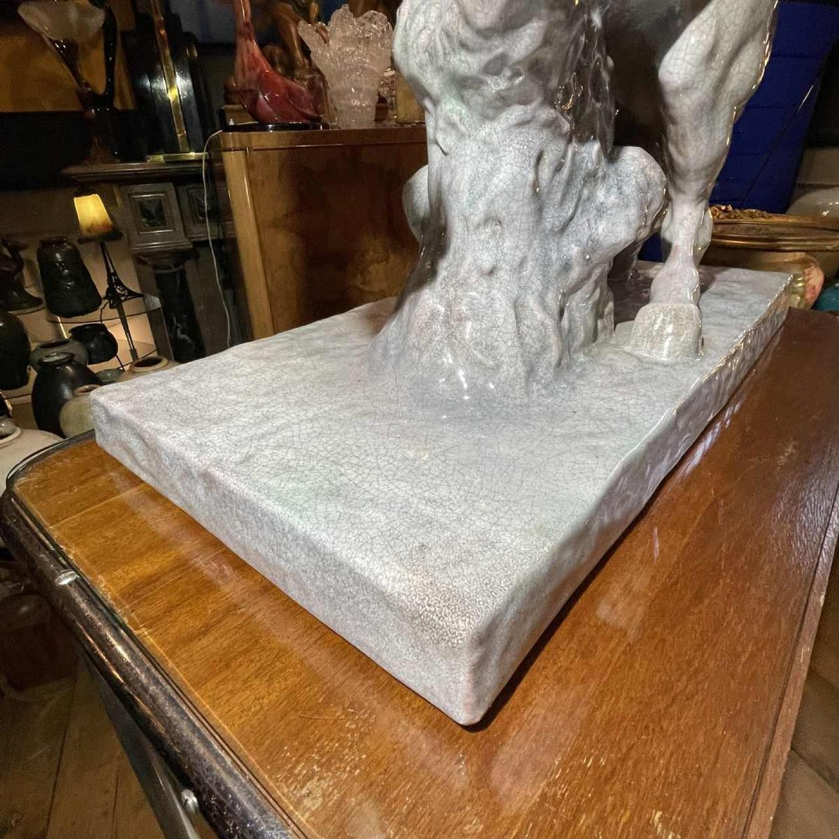 This form is only used to notify us of illegal content on product: ELSE BACH / KARLSRUHE Prancing Horse 82cm Art Deco sculpture, majolica ceramic ( white craquelé ) ca 1935.
