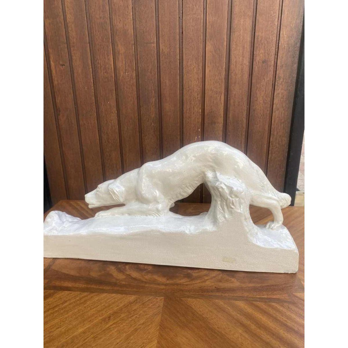 This form is only used to notify us of illegal content on product: G. Ninin chien ceramic / earthenware sculpture, crackled white, ca 1930.