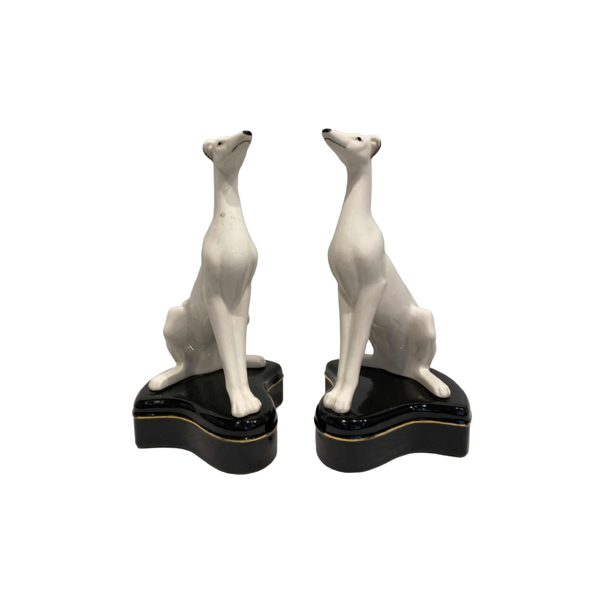 Fitz & Floyd, pair of porcelain greyhound dogs sculptures, ca 1960