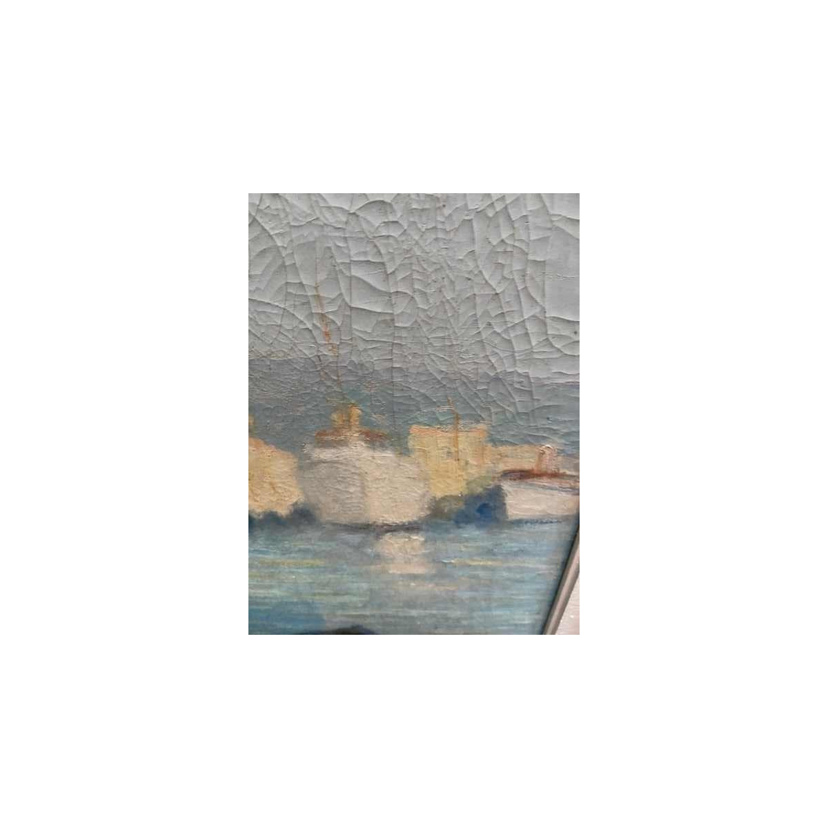 Raymond Thibesart ' View of the Port ', oil on canvas, circa 1930/40