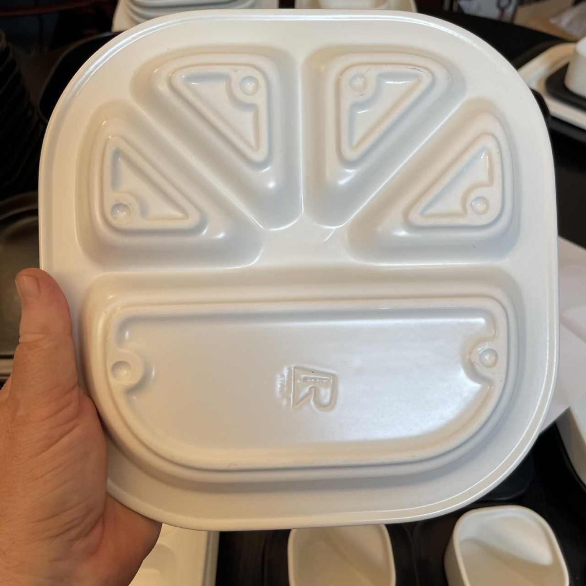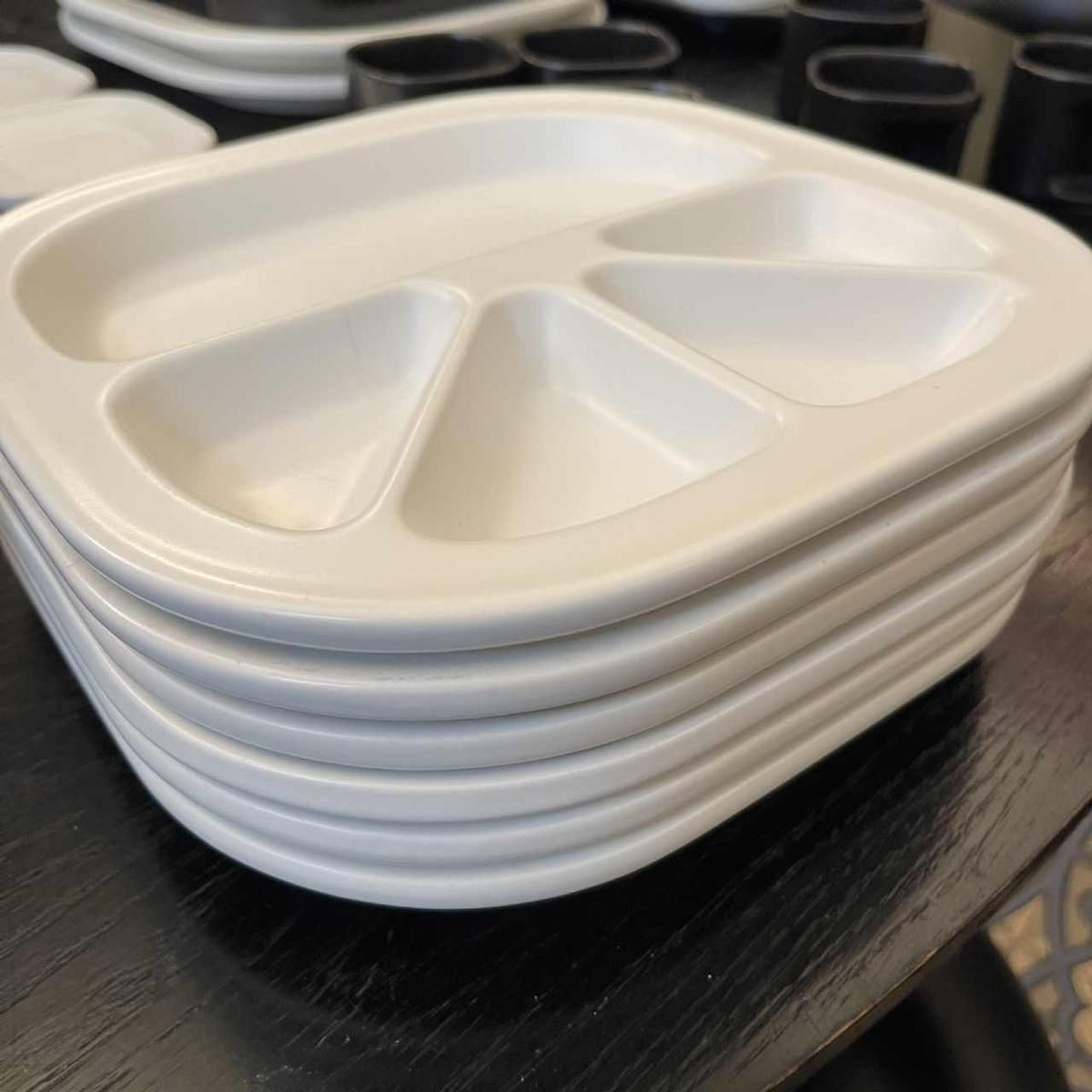 • 6 compartmentalized white fondue plates, 25 x 25 cm