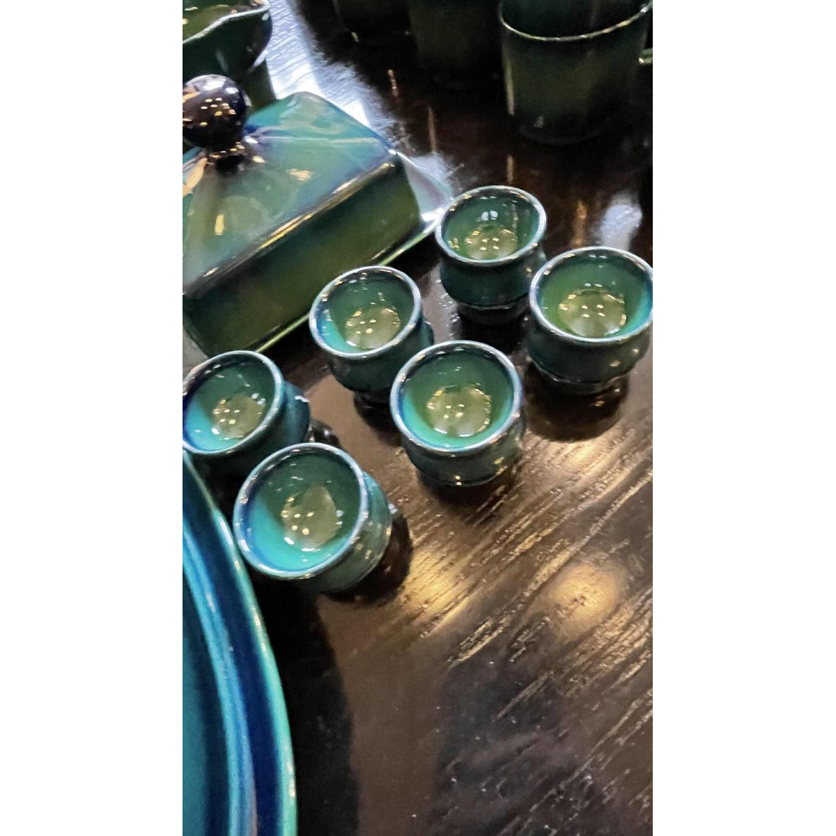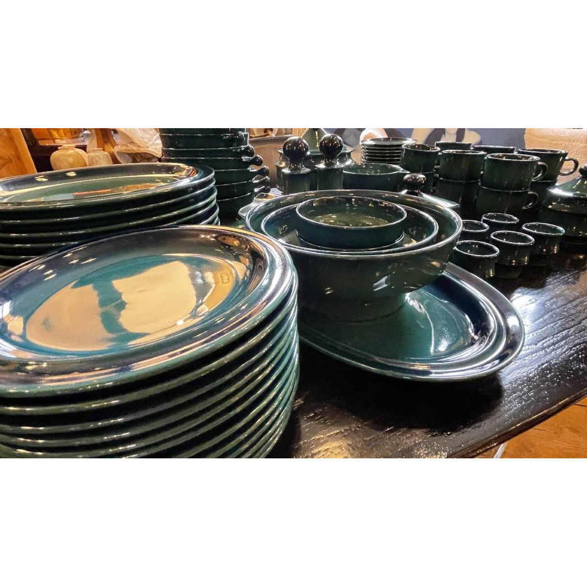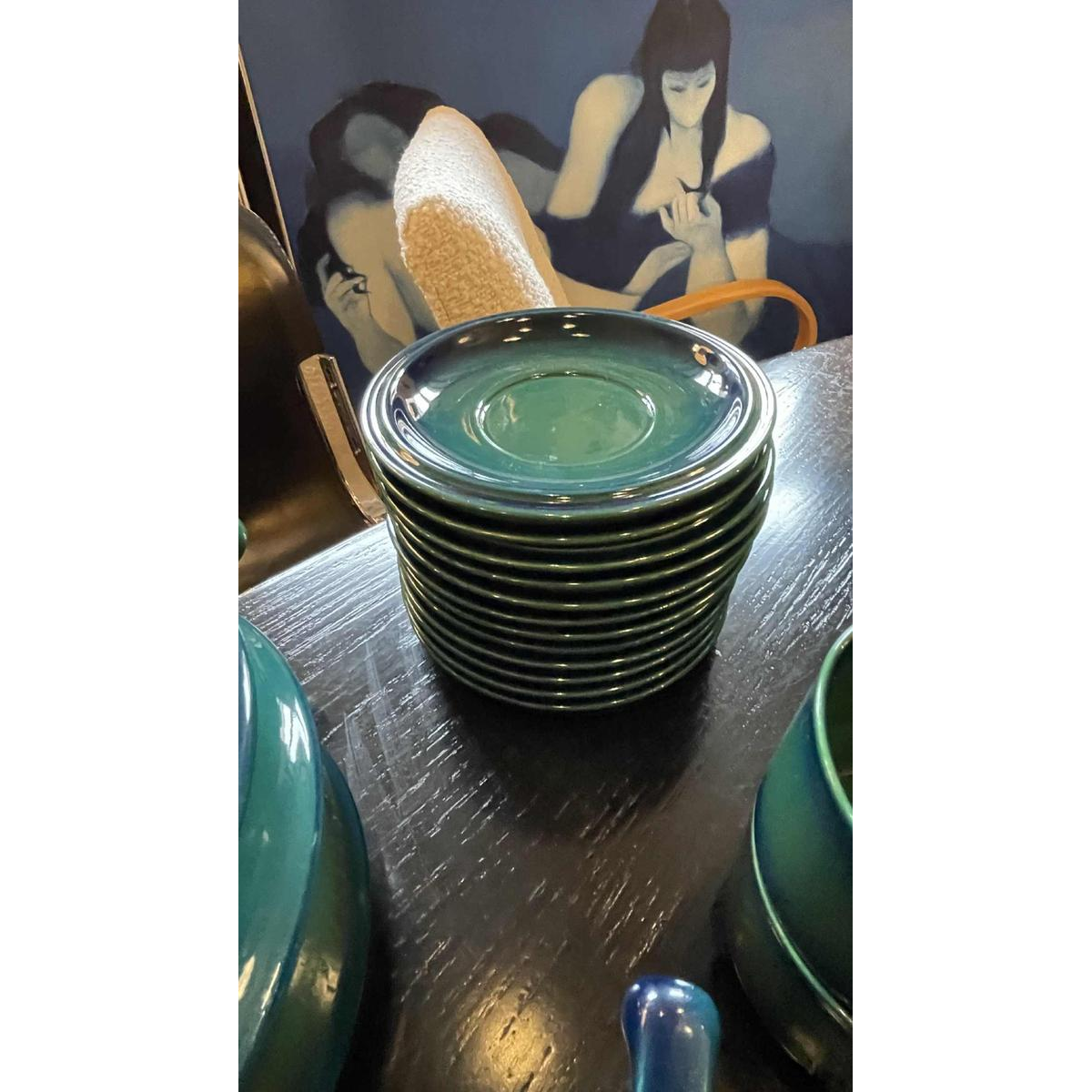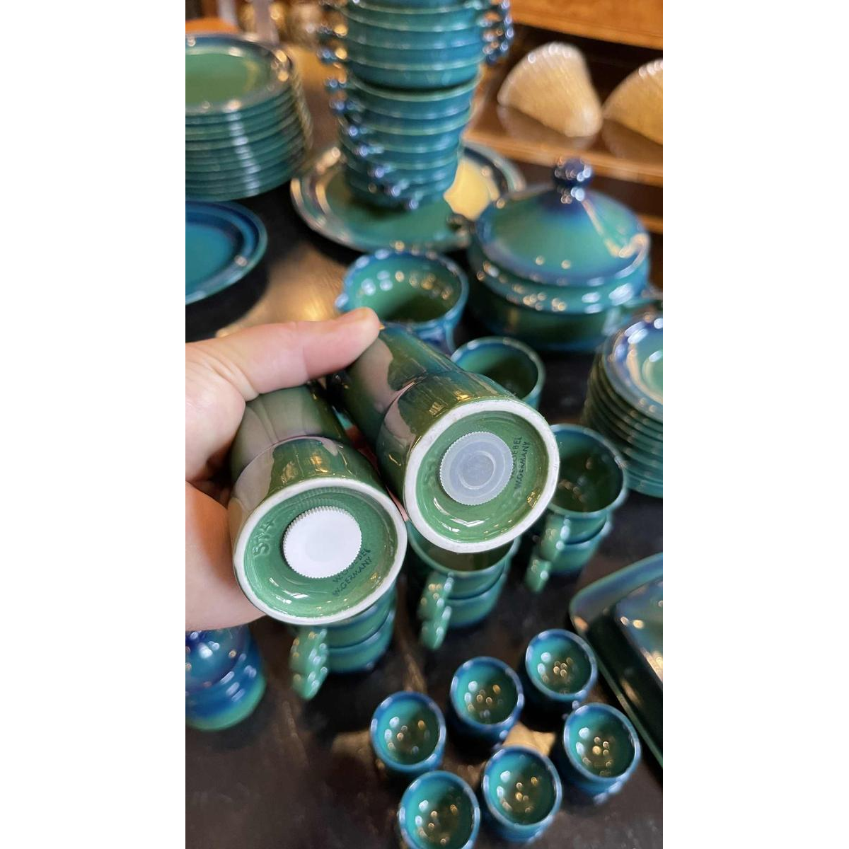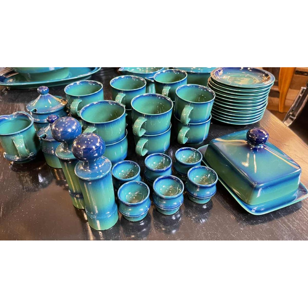 Vintage " Königssee " dinner and coffee service for 12 persons by Goebel, in green enamelled porcelain with blue shading, dating from the 1970s.