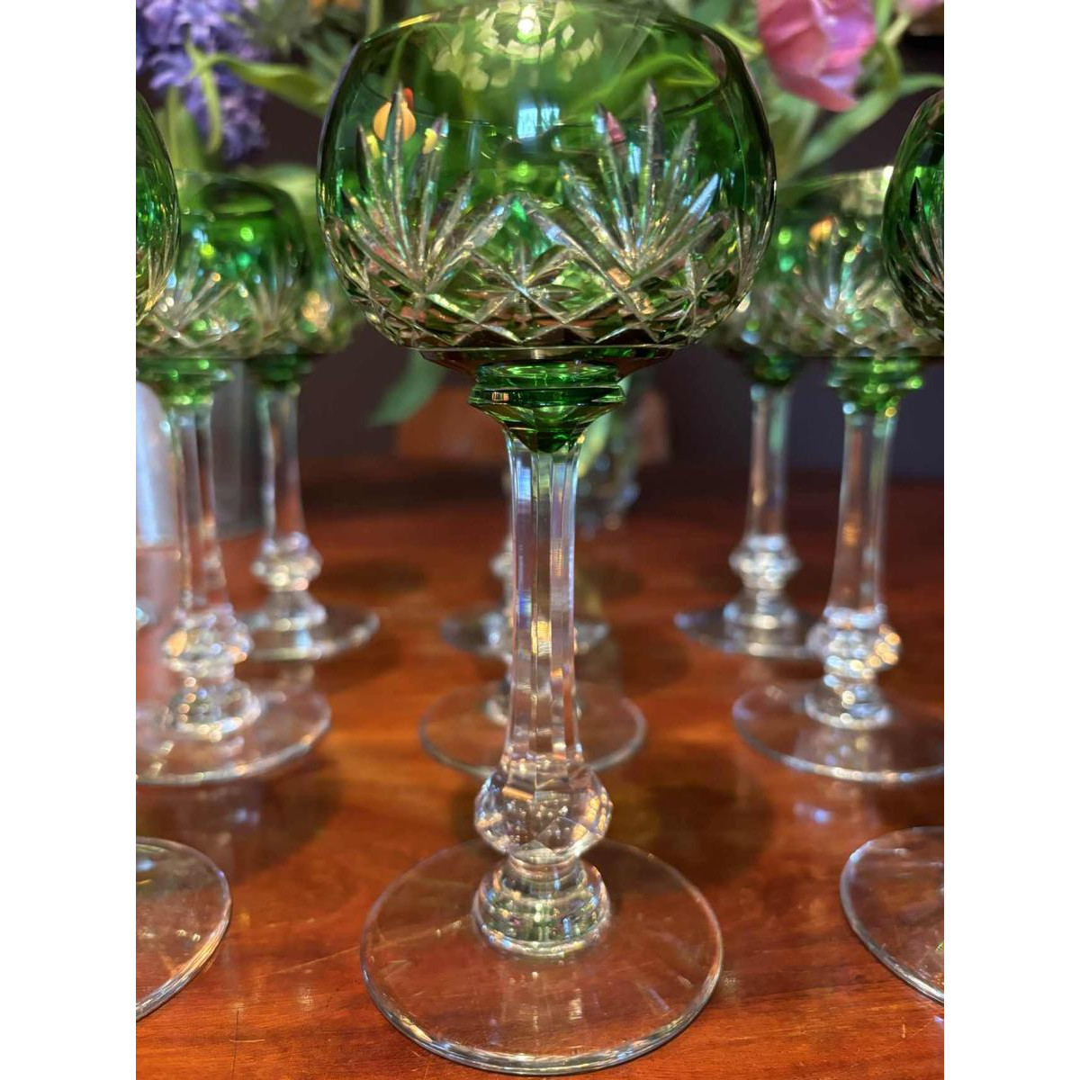 Exceptional suite of twelve Roemer crystal wine glasses from the prestigious Saint Louis crystal works, Massenet model, green color.