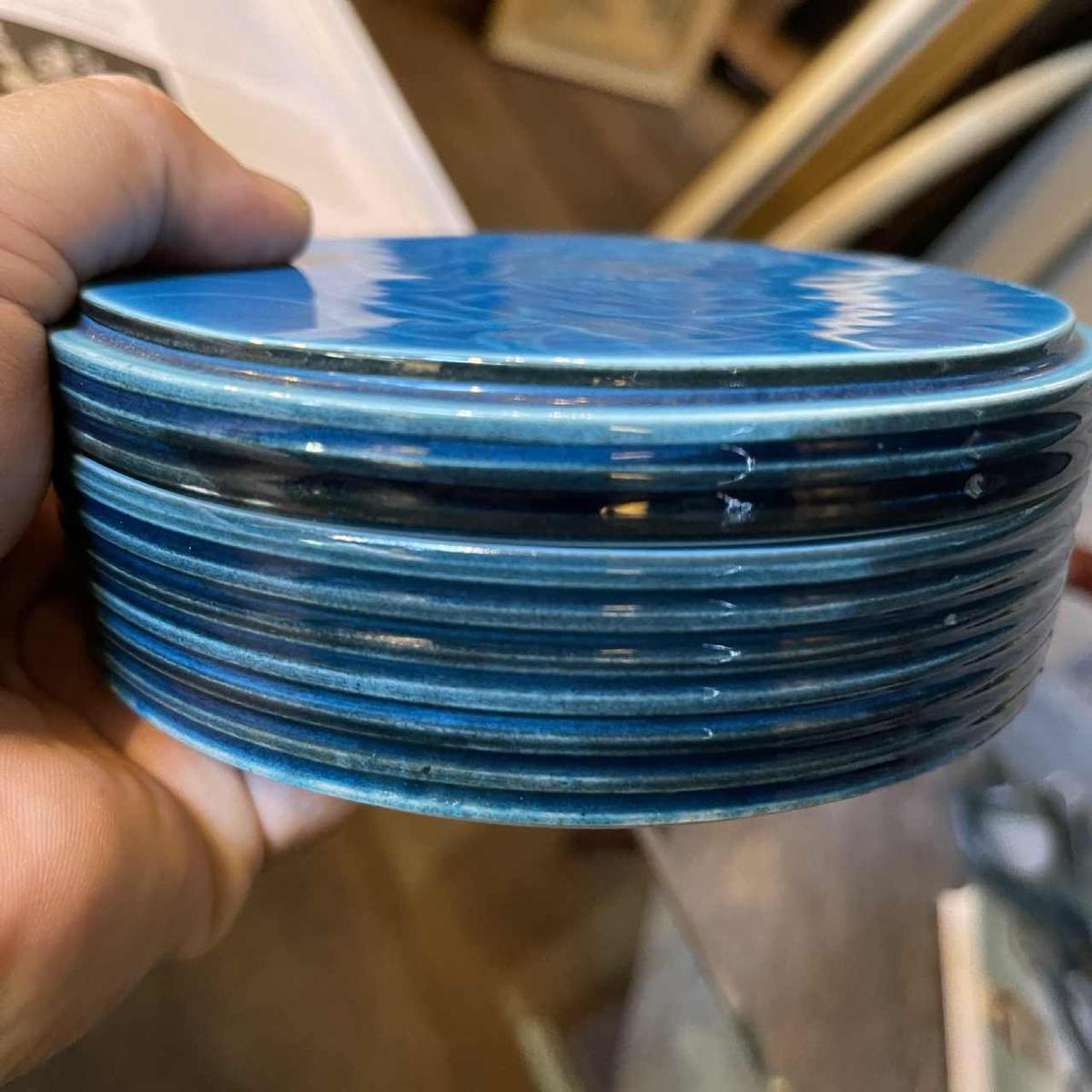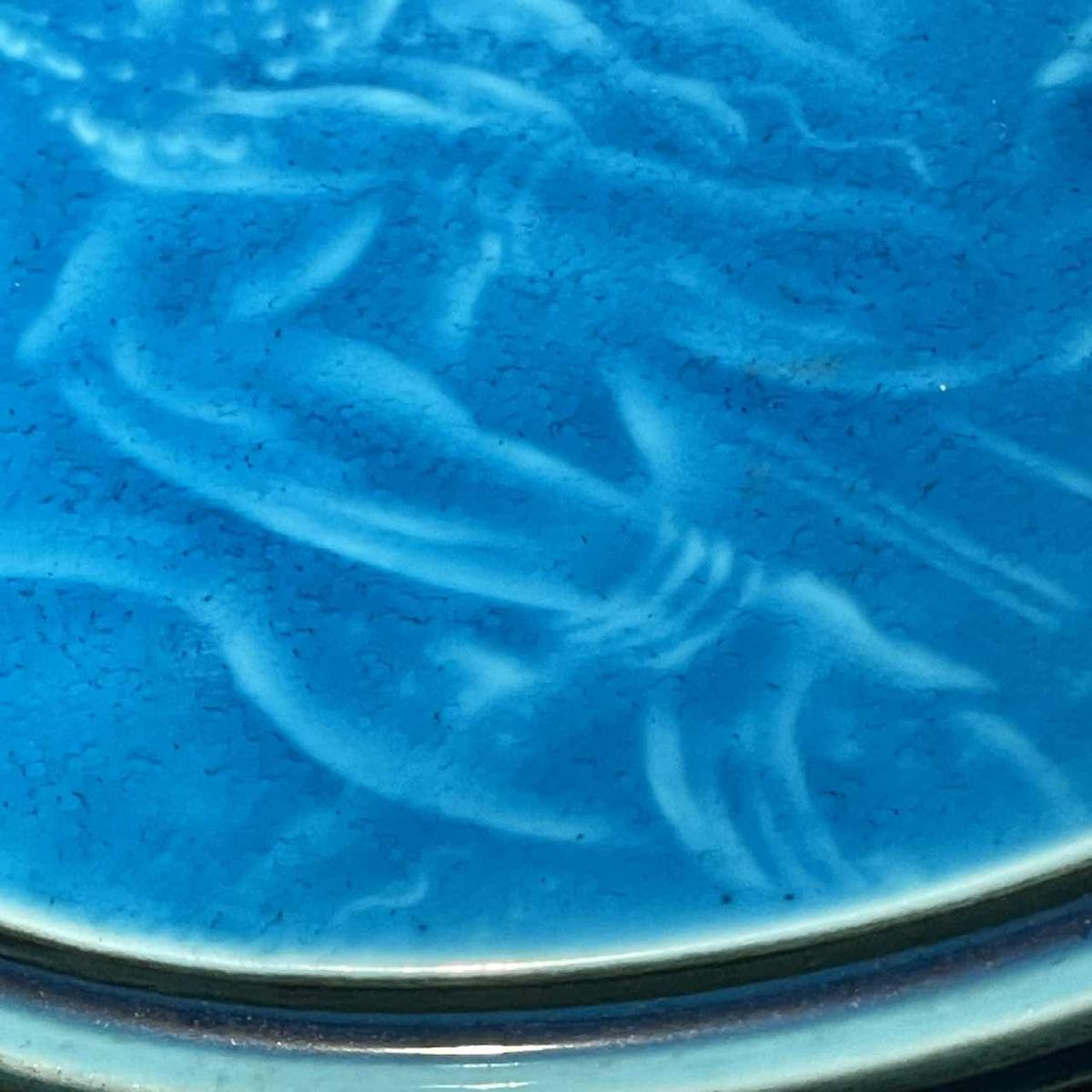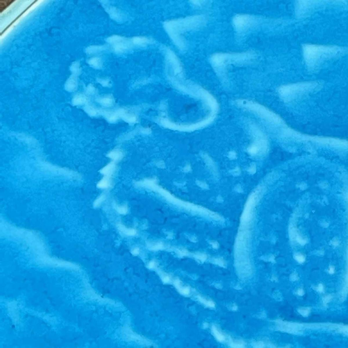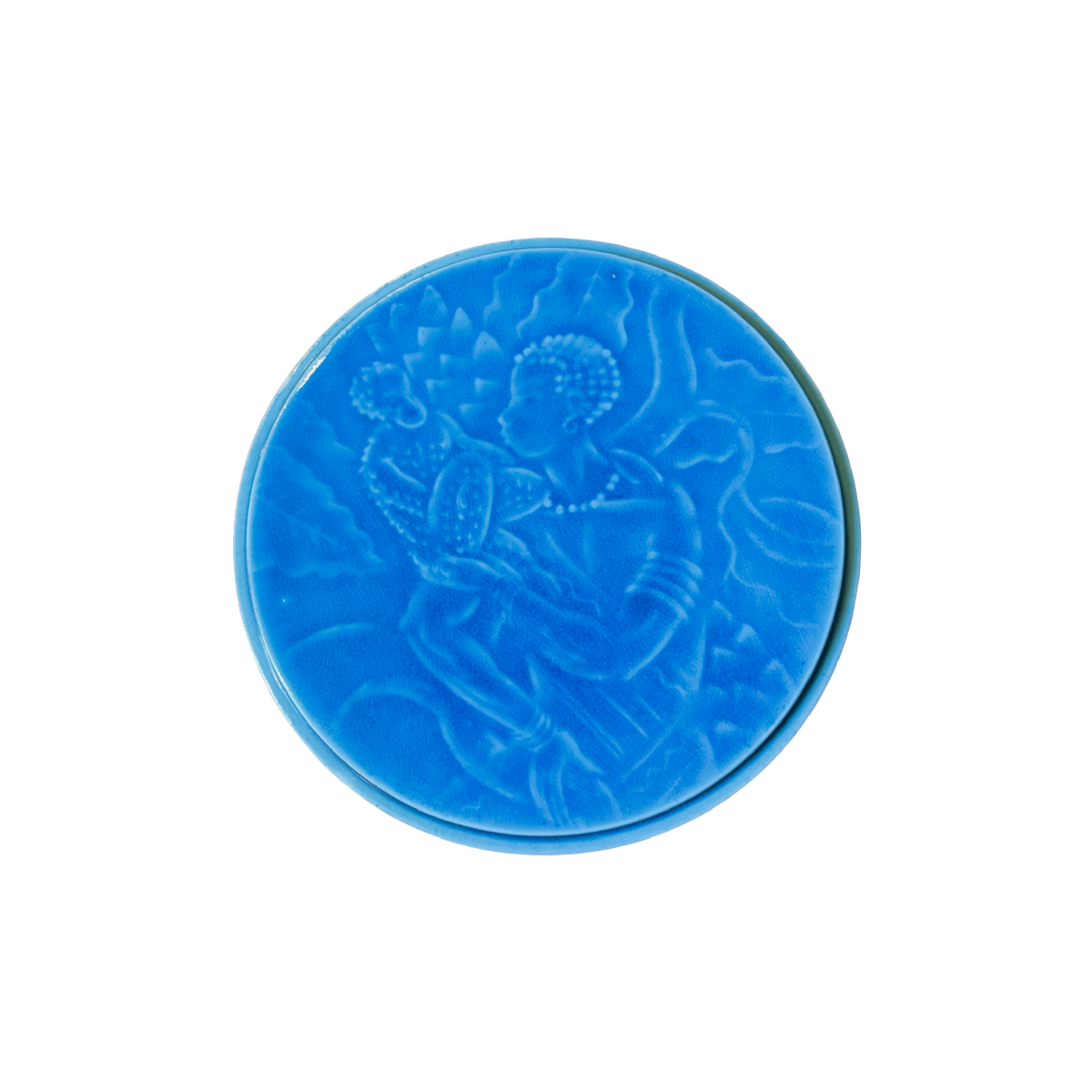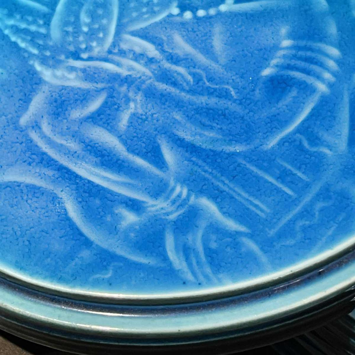 Blue decoration in fine bas-relief, representing an African woman with jewels and a small sign in a luxuriant vegetation, the whole stylized Art Deco.