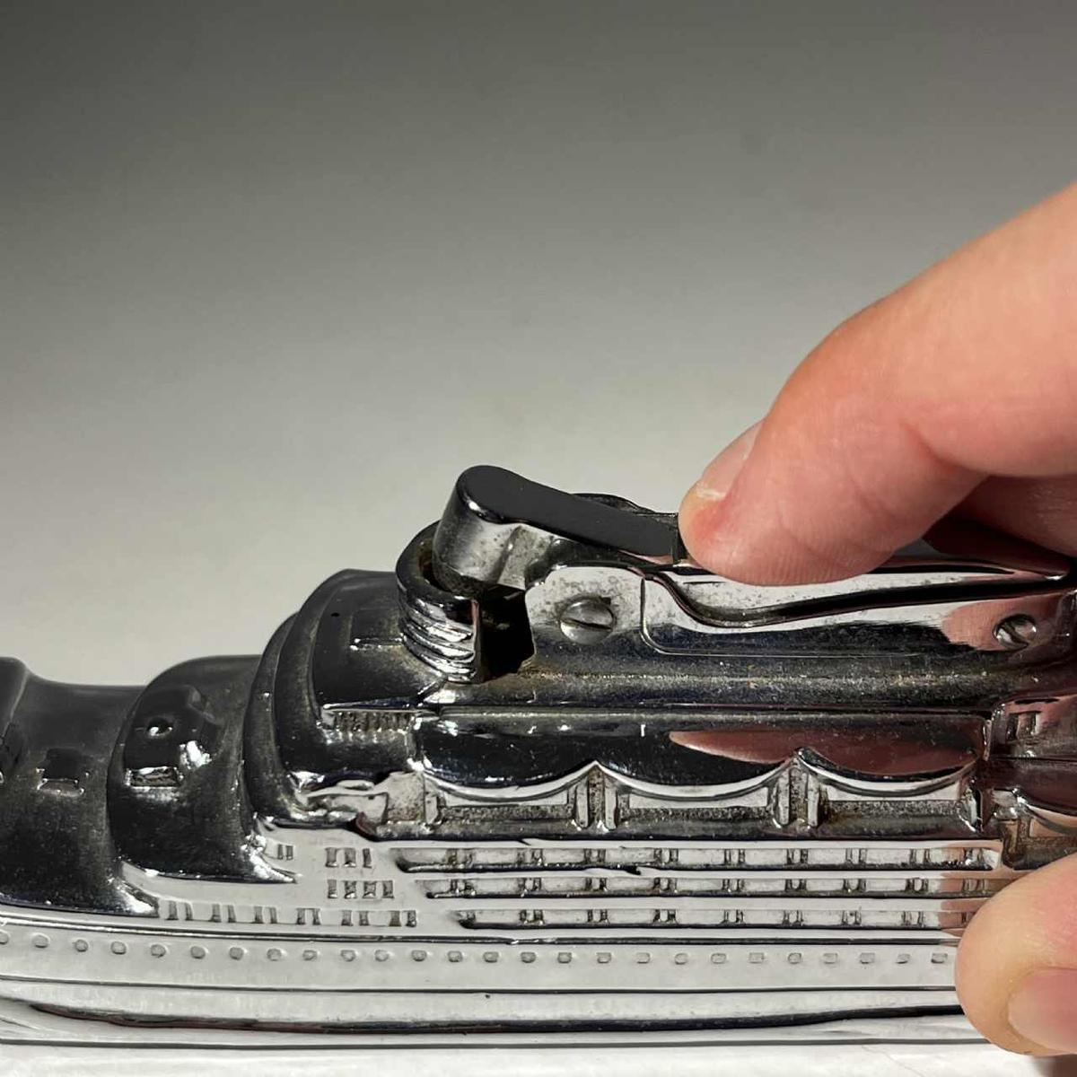 MTC Art Deco table lighter “Ship - Cruise Liner” chrome-plated steel, ca 1930