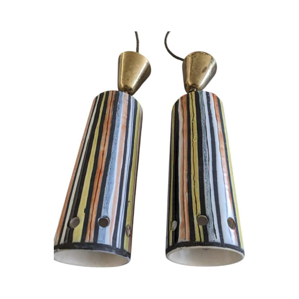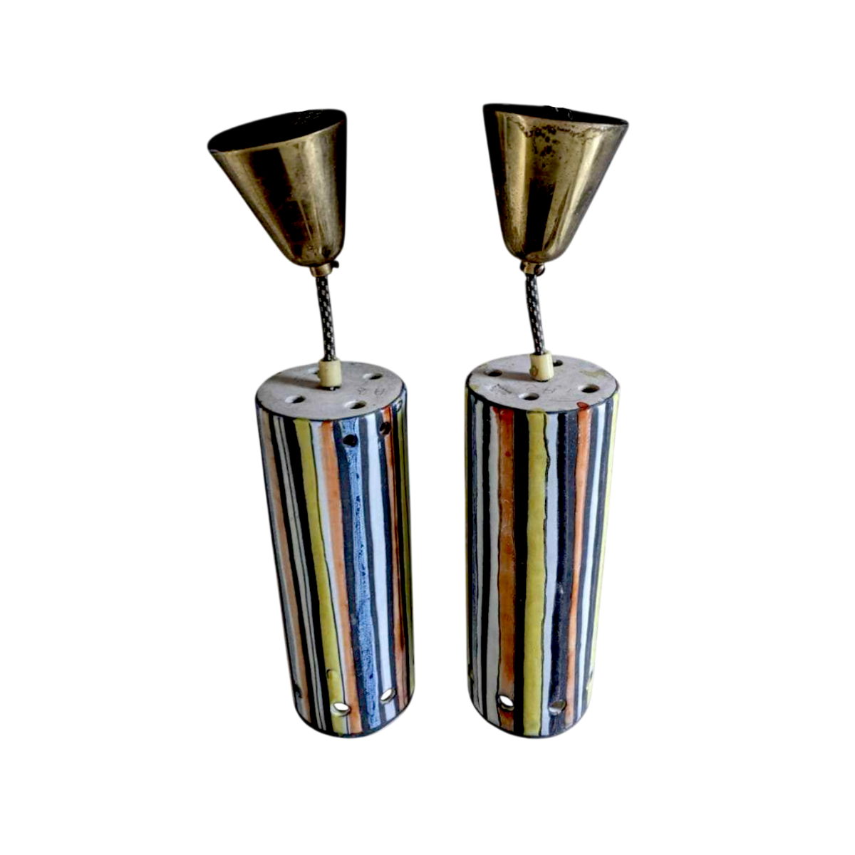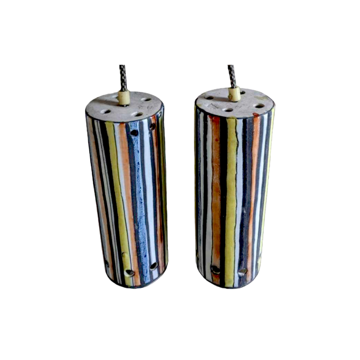 Very rare pair of cylindrical hanging lamps by Roger Capron, Vallauris ‘pyjama' model.