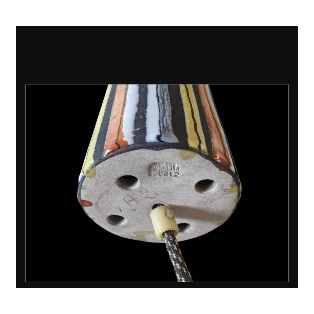 Polychrome ceramic cylindrical pendant signed Capron Vallauris.