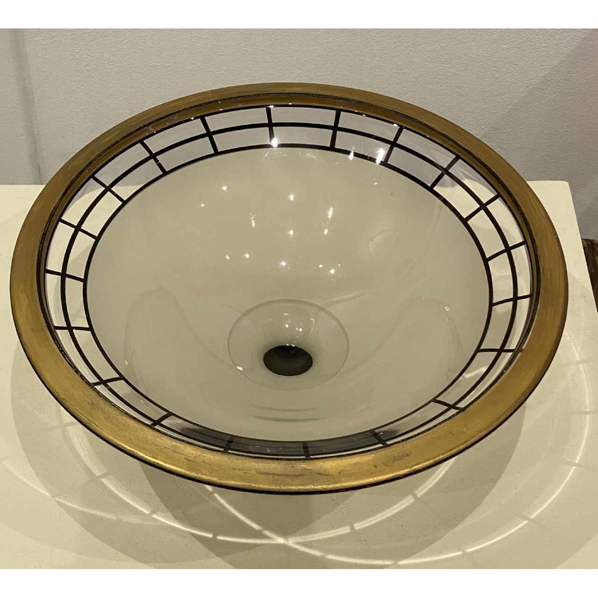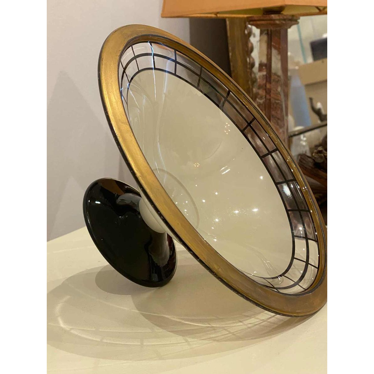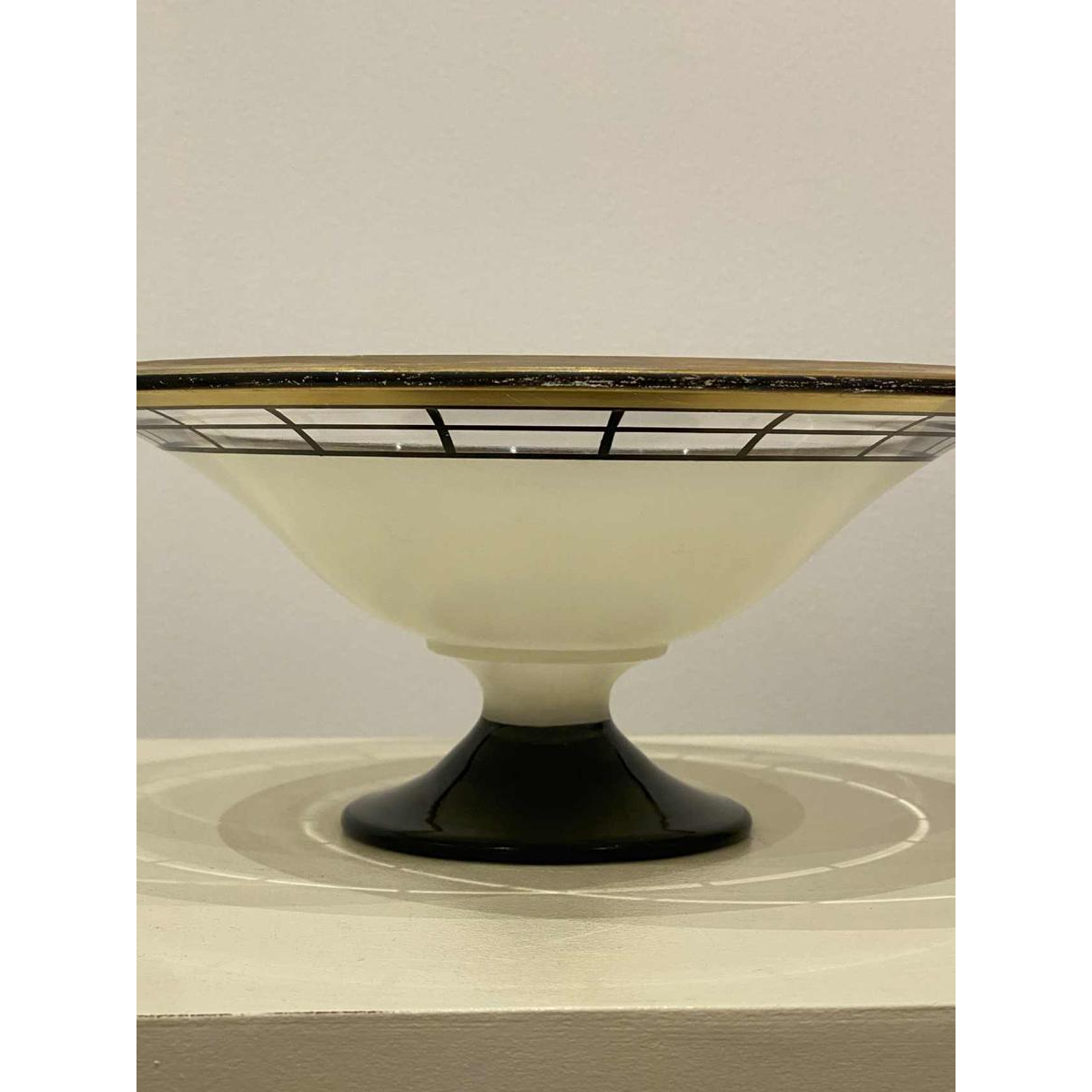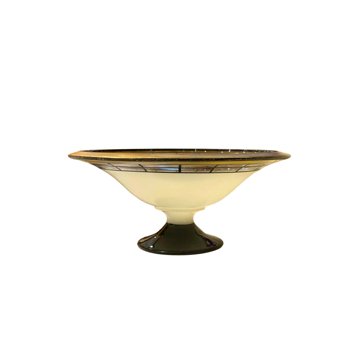 Superb Art Deco glass bowl by Westmoreland Glass Cie with black geometric motifs highlighted by a gold border.