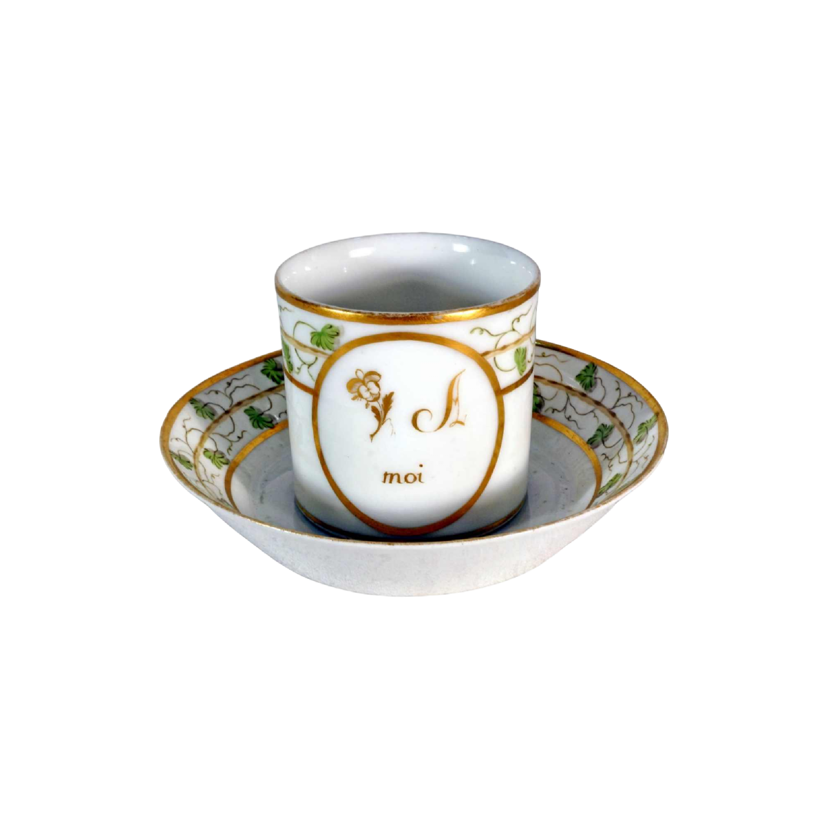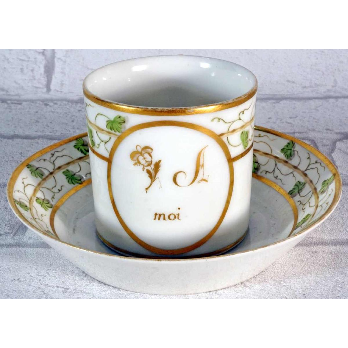 Paris porcelain, cup and saucer with rebus decoration, 18th c