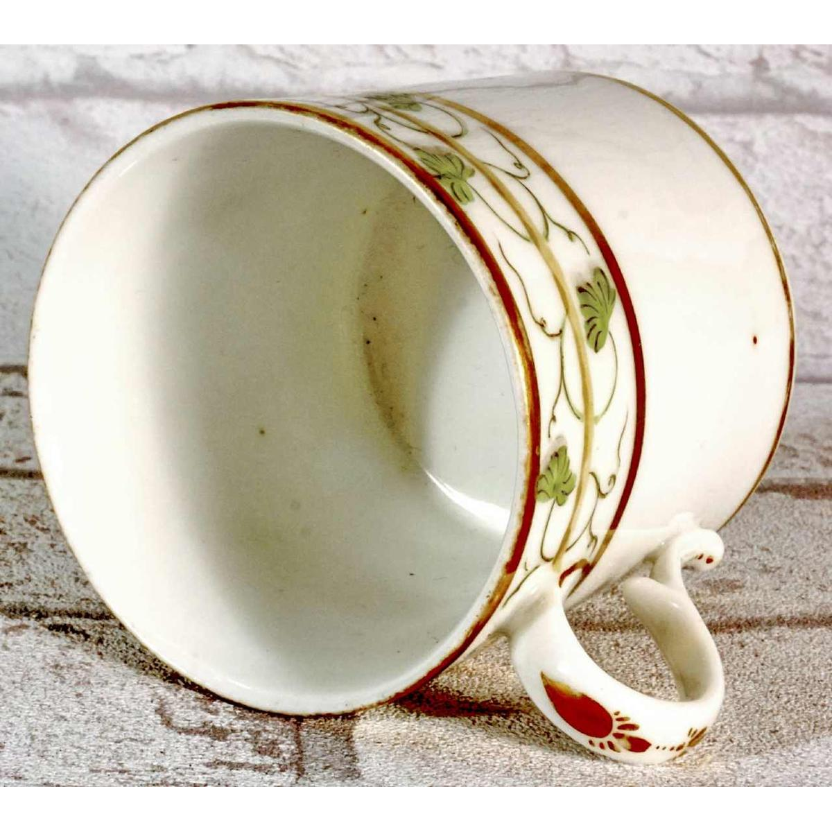 White background with polychrome garlands of grapefruit borders. In the center of the cup, in a round medallion, a RARE REBUS design. Gold fillet borders.