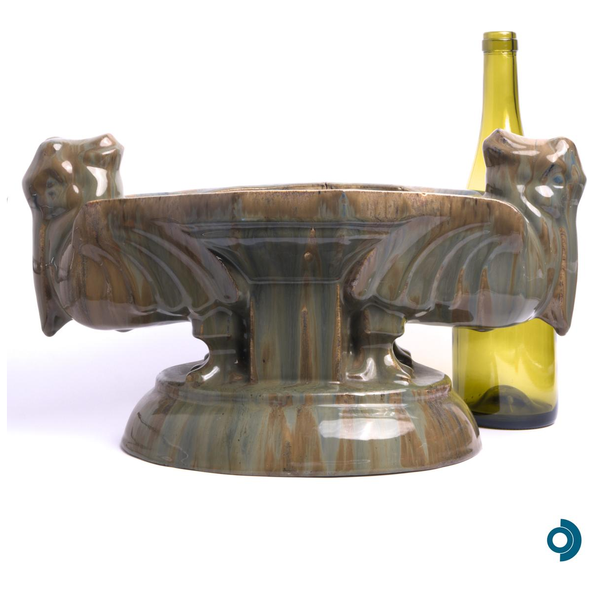 This form is only used to notify us of illegal content on product: Roger Guérin, stoneware planter with stylized pelicans, early 20th century.