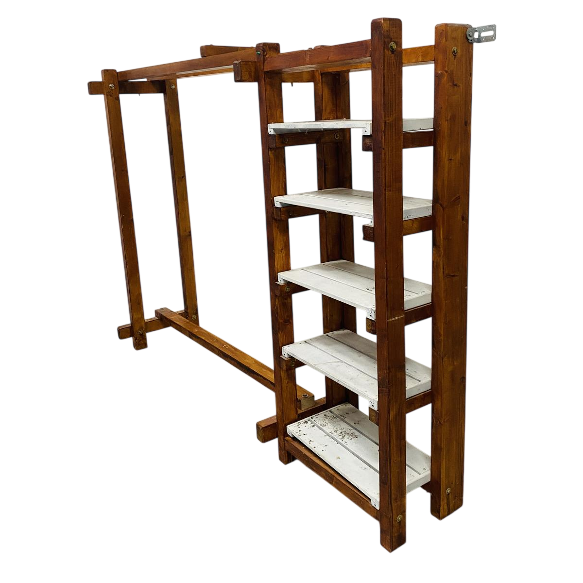 Architectural coat rack/shelf in solid fir, 20th century