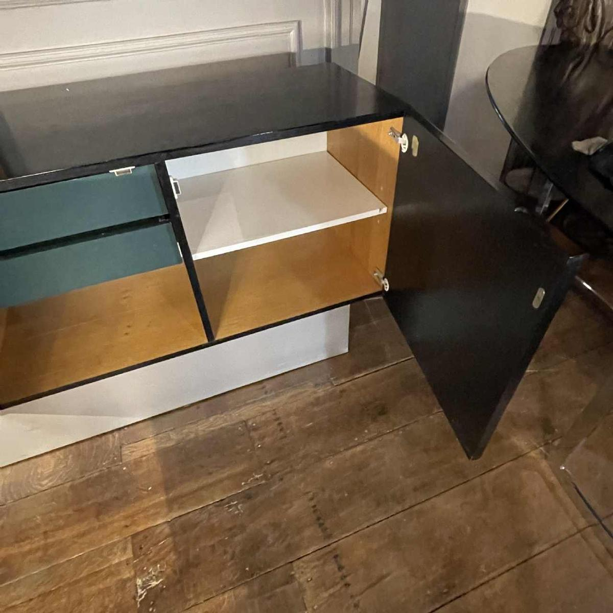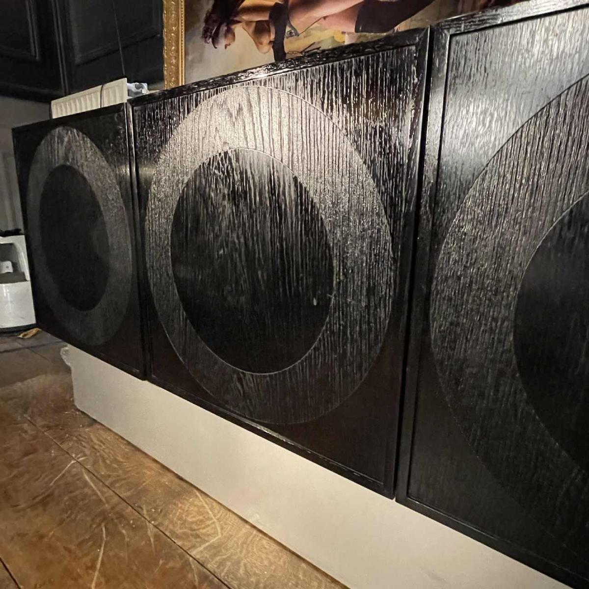 This form is only used to notify us of illegal content on product: De Coene Frères, Brutalist Op'Art Vintage sideboard, black oak aluminium 1970.
