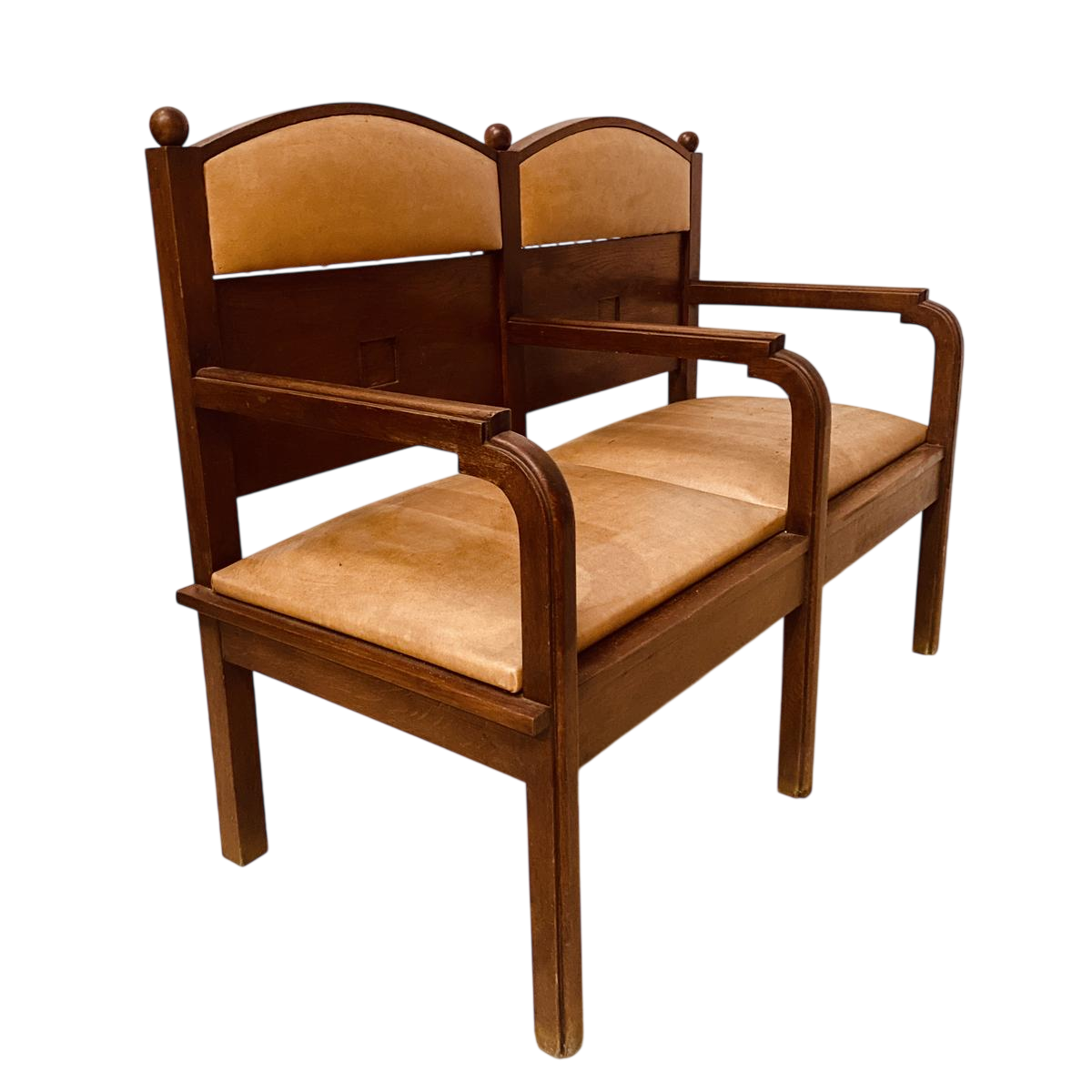 This form is only used to notify us of illegal content on product: Art Deco two-seater bench in solid mahogany, 20th century.