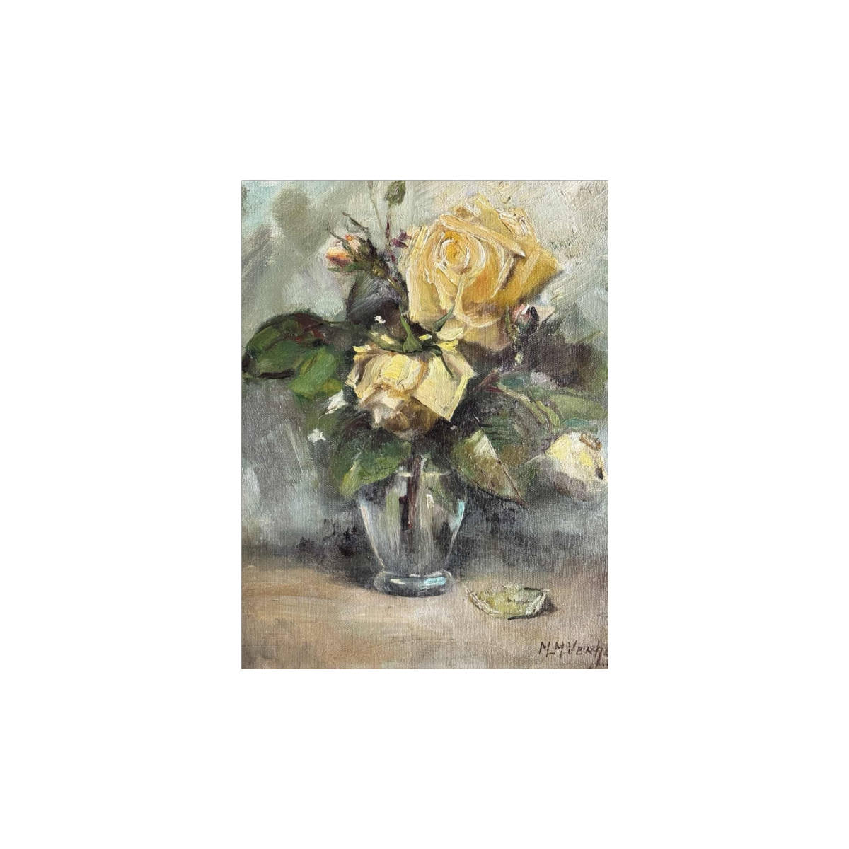 M-M VERHEYDEN ‘Bouquet of yellow roses’ still life painting, painting oil on canvas, 20th century