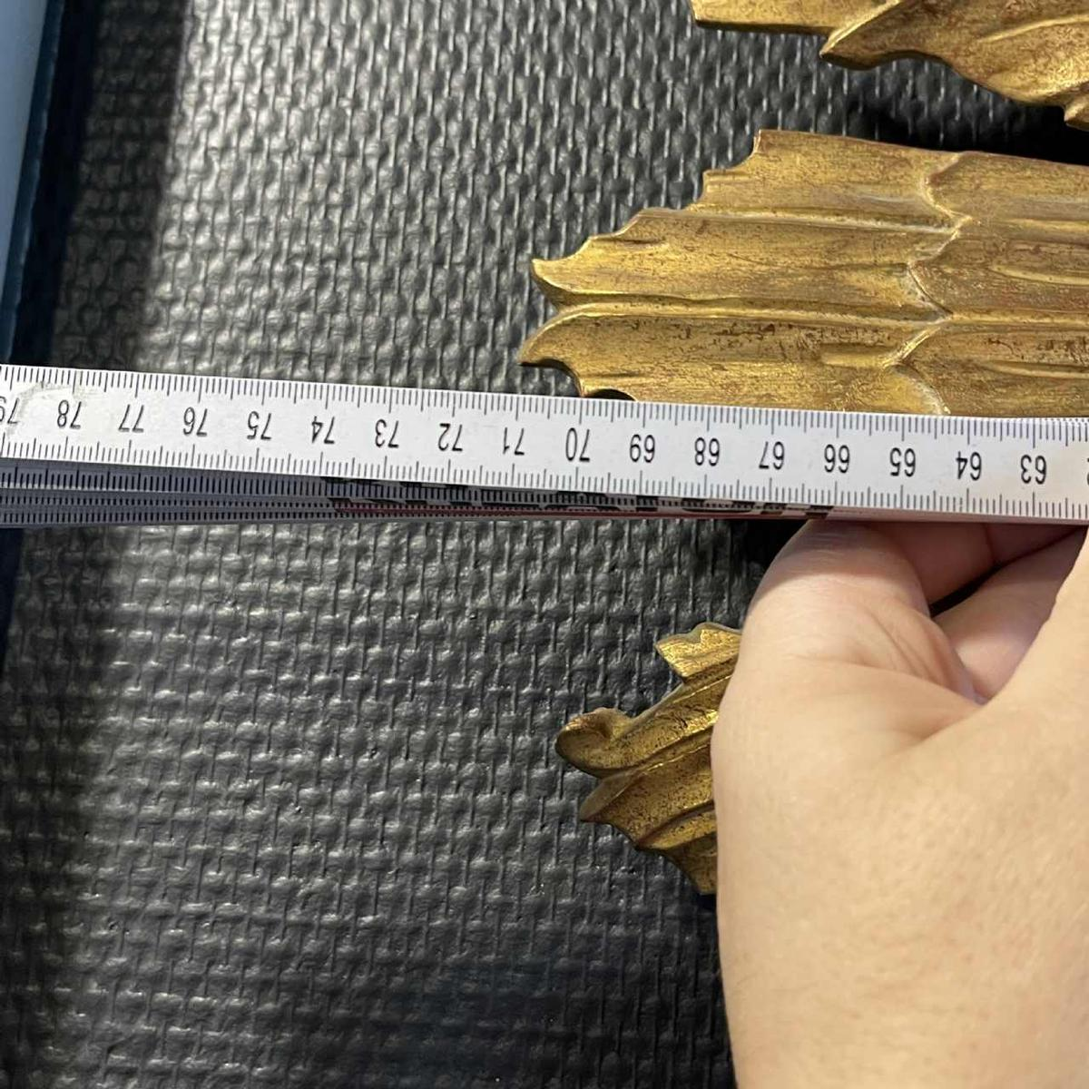 This form is only used to notify us of illegal content on product: Large Carved Giltwood Sunburst / Witch Mirror, Golded Wall decoration, ca 1950.