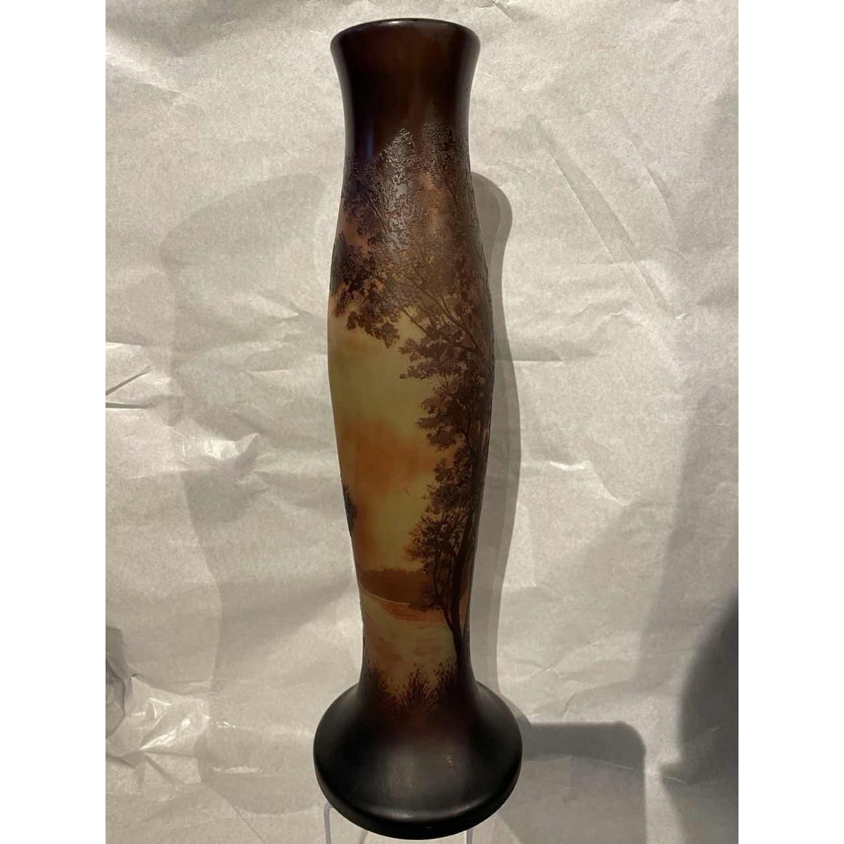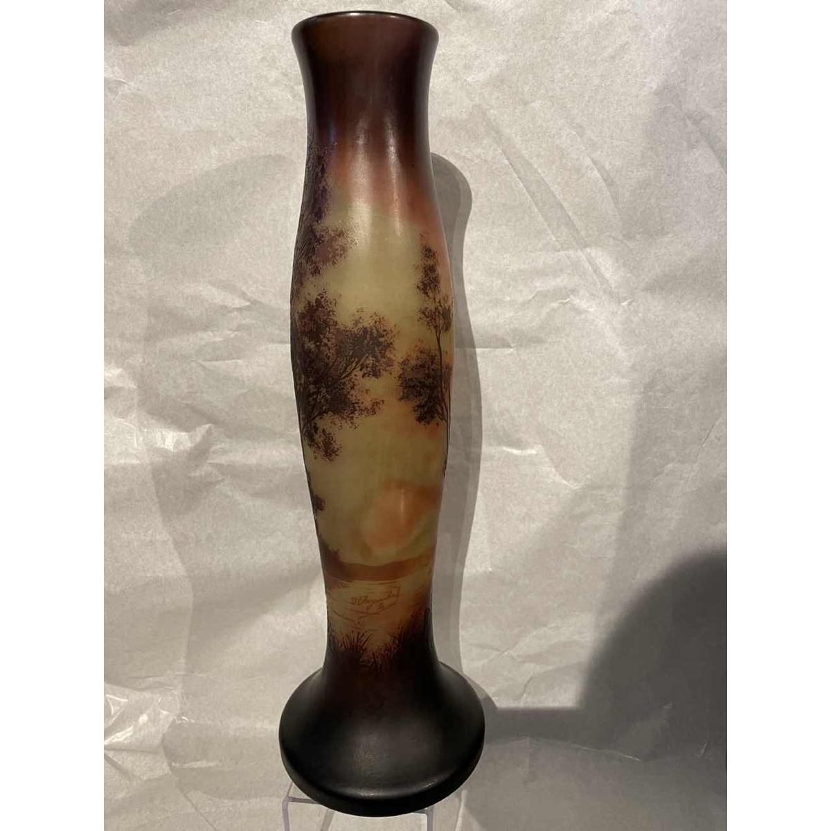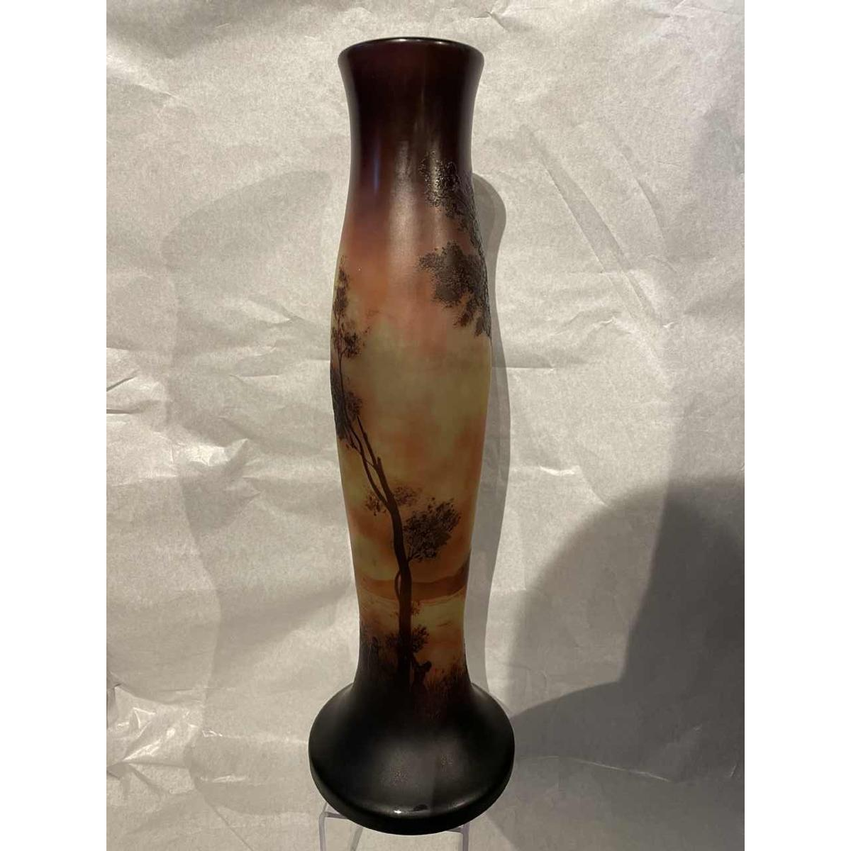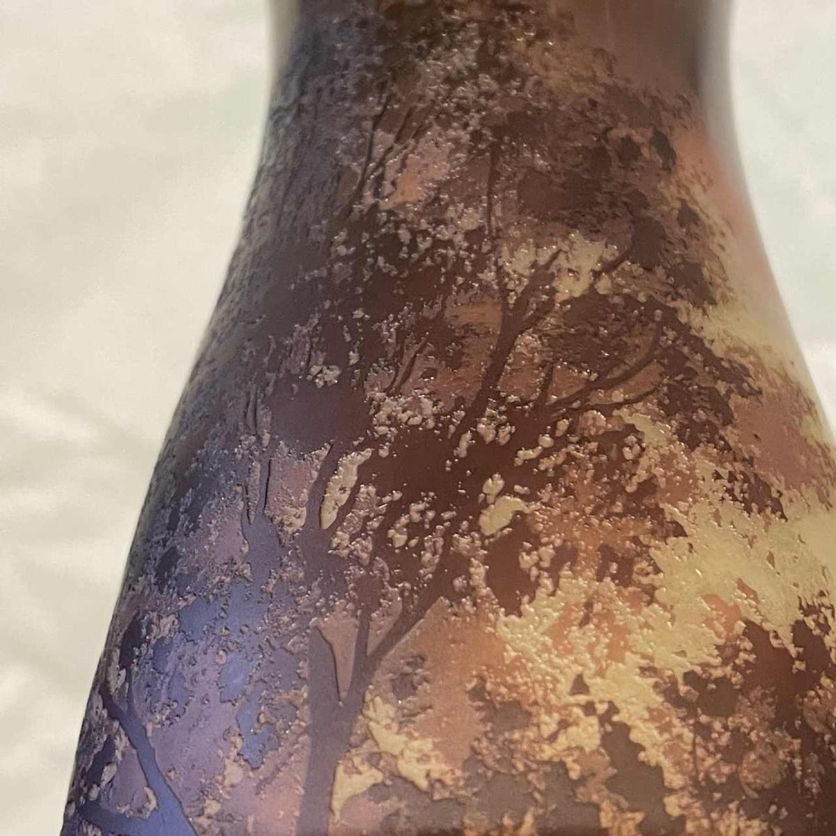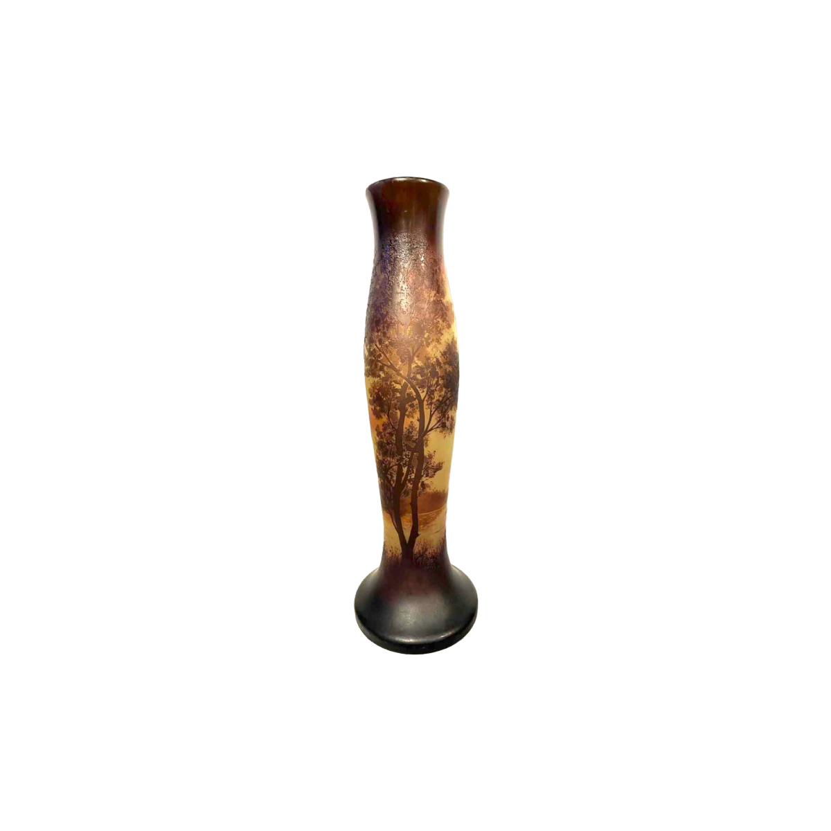 A multi-layered crystal vase with acid-etched decoration of an animated landscape. It bears the signature D'Argental and the monogram SL for Saint Louis.