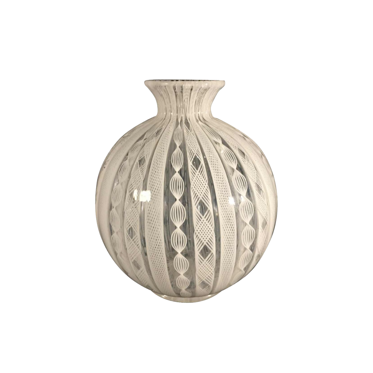 (https://www.artaplaza.com/en/vases/3413-fulvio-bianconi-venini-murano-zanfirico-filigree-white-ball-vase-1950-60.html)