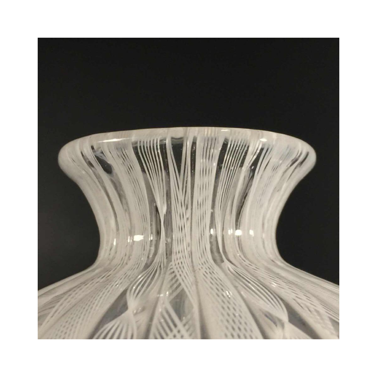 Baluster vase in clear glass lined with canes "reticello white" and "Zanfirico white" heat-welded, blown on the fly.