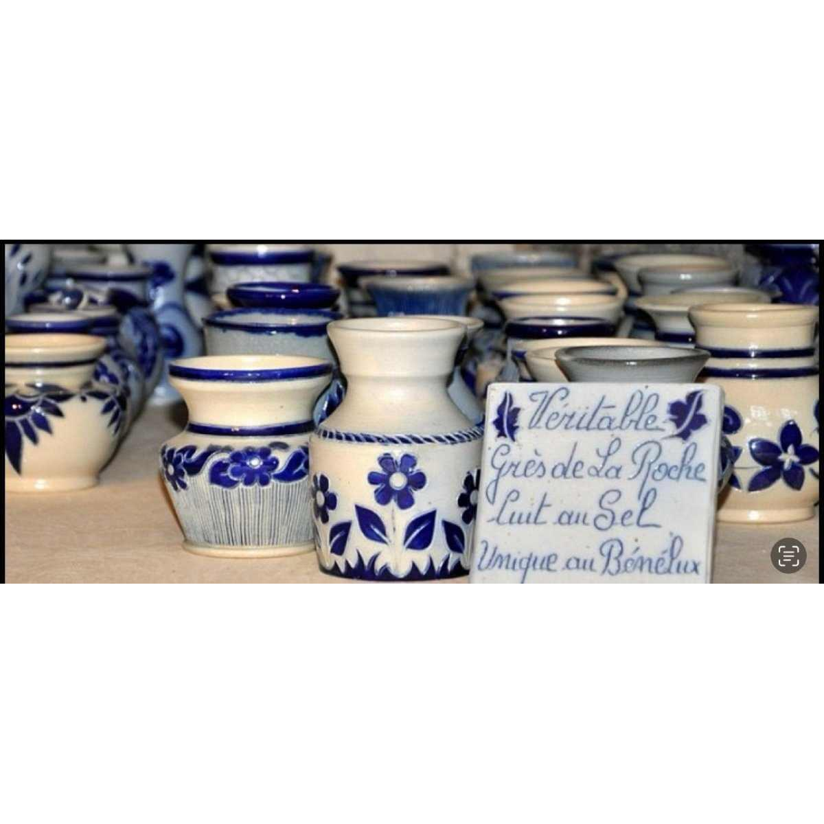 Introduced to La-Roche-en-Ardenne (Belgium) in 1878 by Wilhelm Kalb, this high-temperature-fired, blue-decorated ceramic is so hard that it is known as grès.