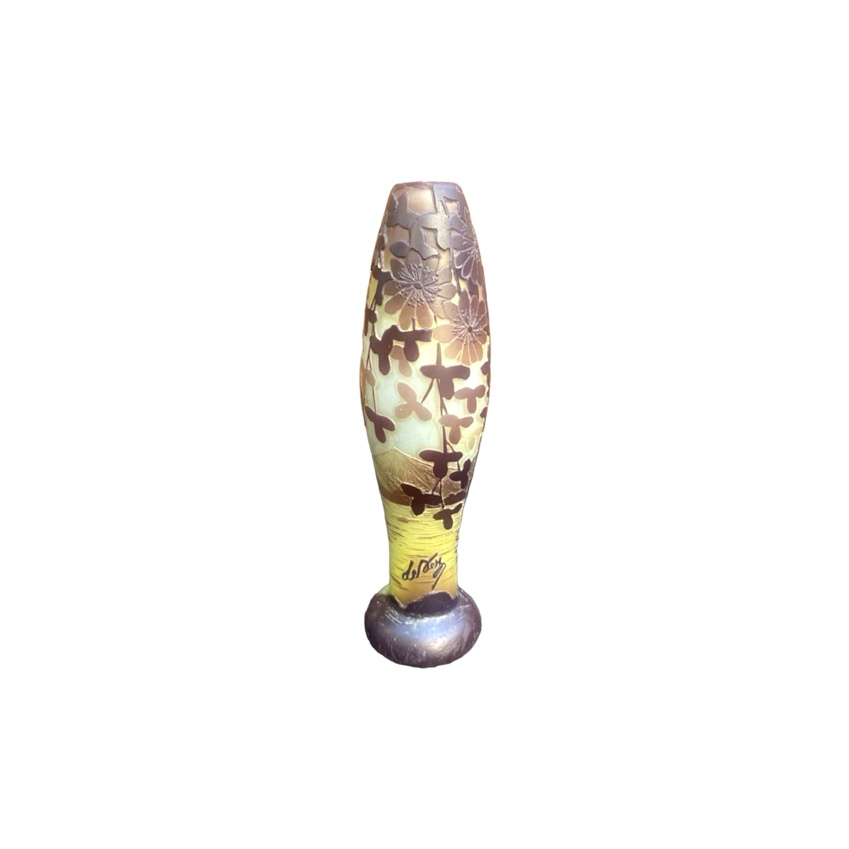 Camille Trutié de Varreux(1872-1942) Cristallerie de Pantin (France), known as De Vez, was a French glassmaker who was born in 1854 and died in 1931. He was mainly active during the Art Nouveau and Art Deco periods. De Vez was renowned for his creations in cameo glass, a technique involving several layers of coloured glass, etched to reveal patterns. He ran the Pantin factory, where he produced works influenced by the à‰cole de Nancy, with floral and natural themes. His pieces are often signed "De Vez" and are distinguished by their artistic and technical quality. The use of motifs inspired by nature, such as flowers, landscapes and birds, is recurrent in his works. Gabriel Lévy has mastered the art of glass with creations that combine technical complexity with refined aesthetics. His works are exhibited in several museums and private collections. De Vez contributed to the development of the French glass industry in the early 20th century. His work remains highly prized by collectors for its beauty and technical innovation. Pieces signed "De Vez" continue to be admired and sought after on the art market.