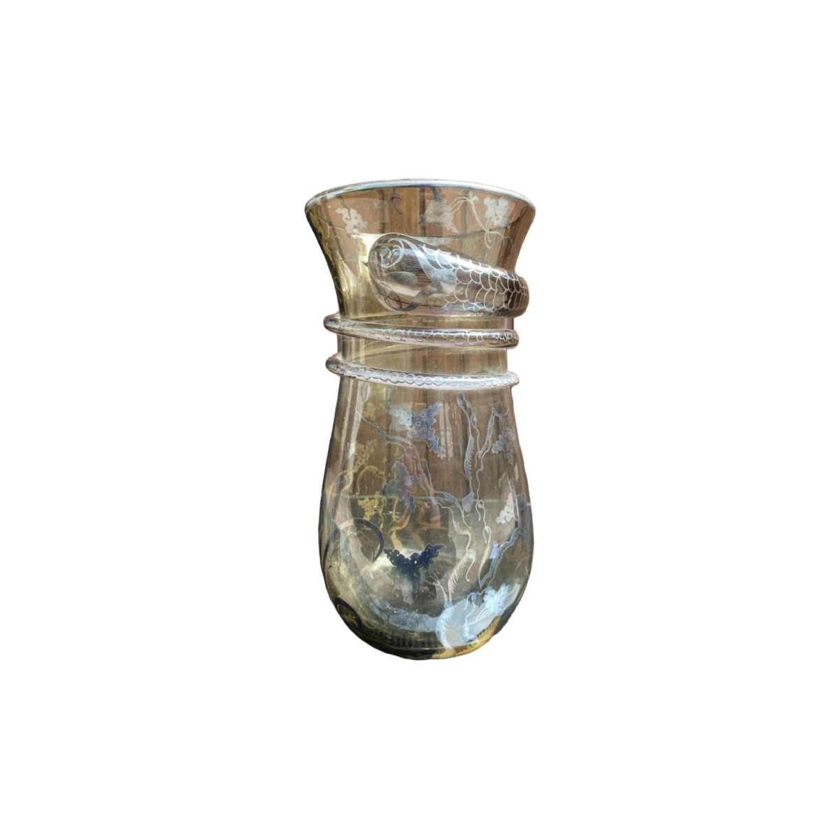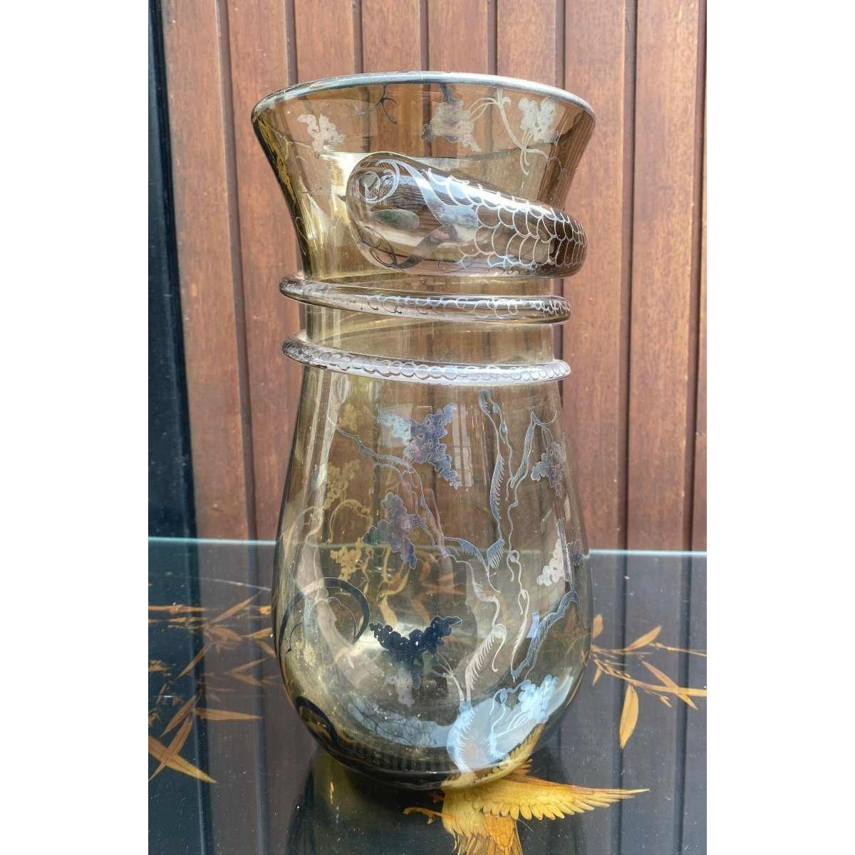 Vase Murano (Venetian) glass, snake appliqué, silver painted decoration