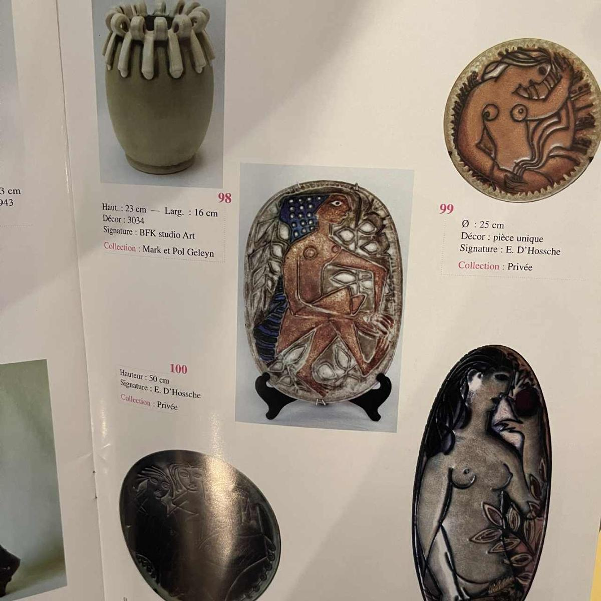 Ernest D'Hossche joined the Boch Frères Kéramis pottery as an apprentice at a very young age and was soon spotted by Charles Catteau. He worked closely with the great ceramist Raymond Chevalier and Léon Empein, and later became their artistic advisor, creating the "Studio d'Art" workshop. He produced numerous models of crockery, dishes, vases, ceramic and stoneware sculptures, notably for Expo 58, with an innovative, even avant-garde approach.