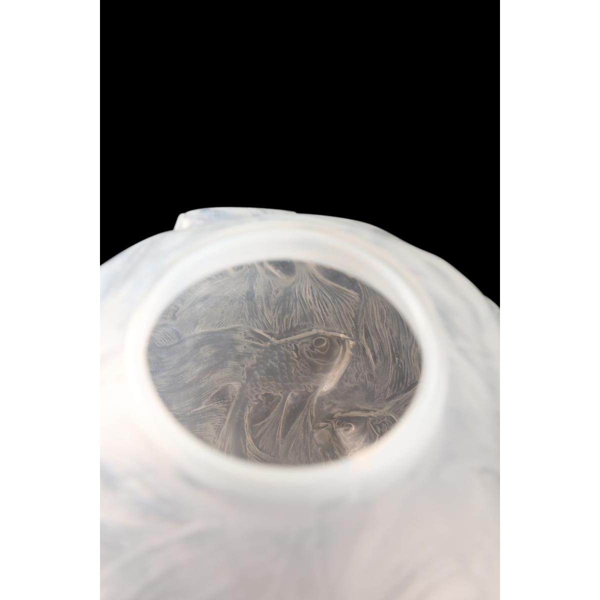 Vase "FORMOSE" model created on August 7, 1924, in white blown-pressed molded opalescent glass with a fish motif.