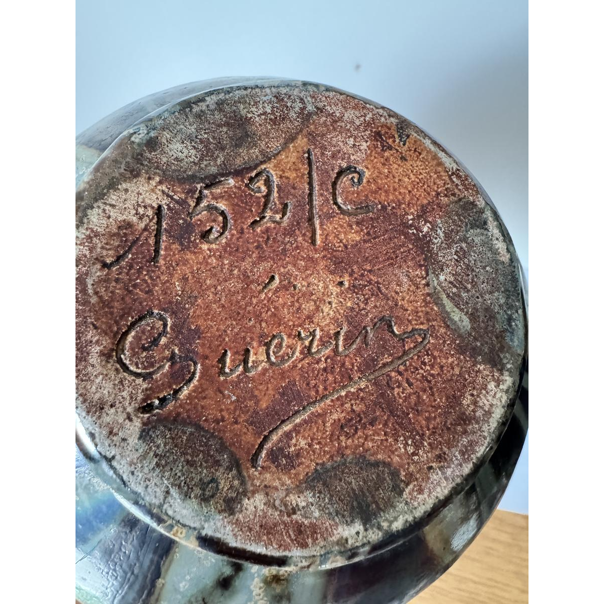 In 1929, the company's name changed: it became Société Anonyme des Grès de Bouffioulx, where he collaborated with several artists. From then on, his works were signed Guérin. From 1930 to 1947, he taught at the École Industrielle Commerciale et de Dessin in Châtelet [2] . In 1932, he left Société des Grès de Bouffioulx to set up his own business. Also in 1932, he taught at the Institut Supérieur des Arts Décoratifs de la Cambre in Brussels. In 1935, the SA was dissolved. In 1938, he created a new company SA Grès de Bouffioulx. After the Second World War, he expanded his business with his son, Jules Guérin, who turned stoneware and developed industrial and architectural ceramics. In 1951, he created a third SA (Société Anonyme Grès de Bouffioulx).